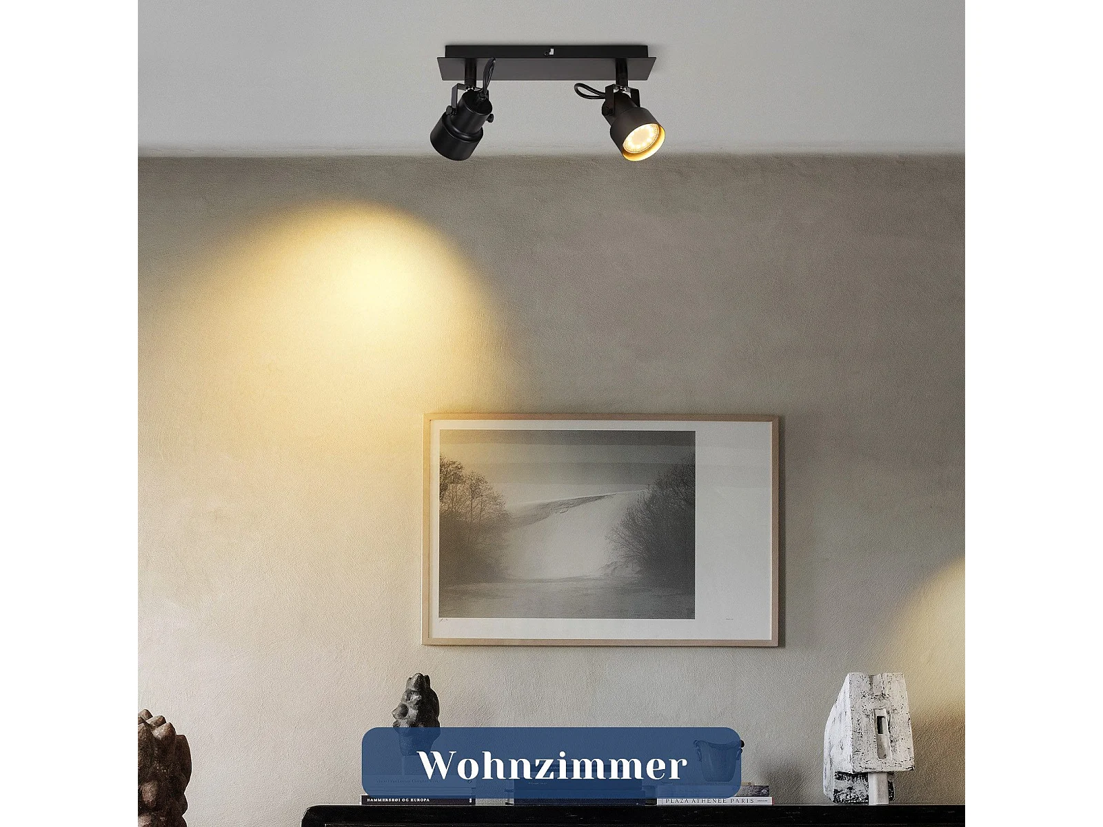 NETTLIFE Spot de Plafond Noir Plafonnier Vintage GU10 Lampe de Cuisine pour Orientable 2 Flammes Vintage 350°