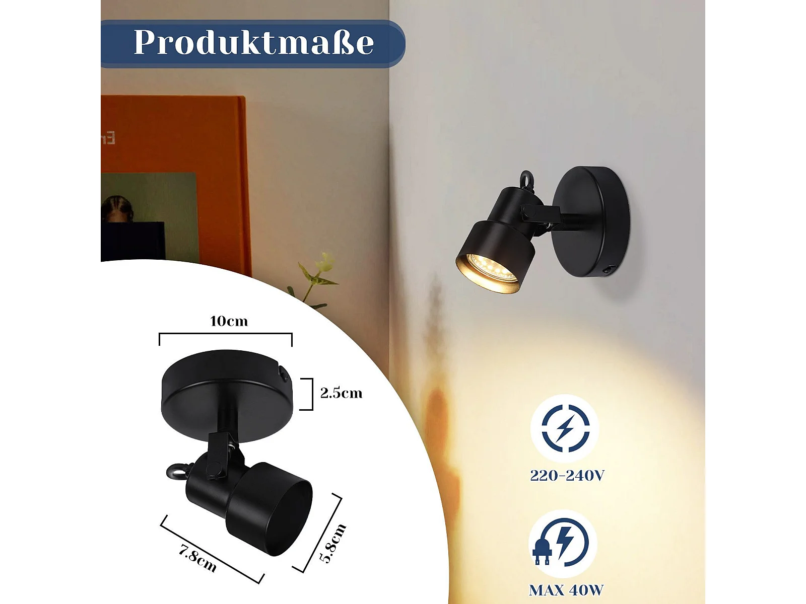 NETTLIFE Spot de plafond noir - Plafonnier vintage GU10 Lampe de cuisine pour salon couloir