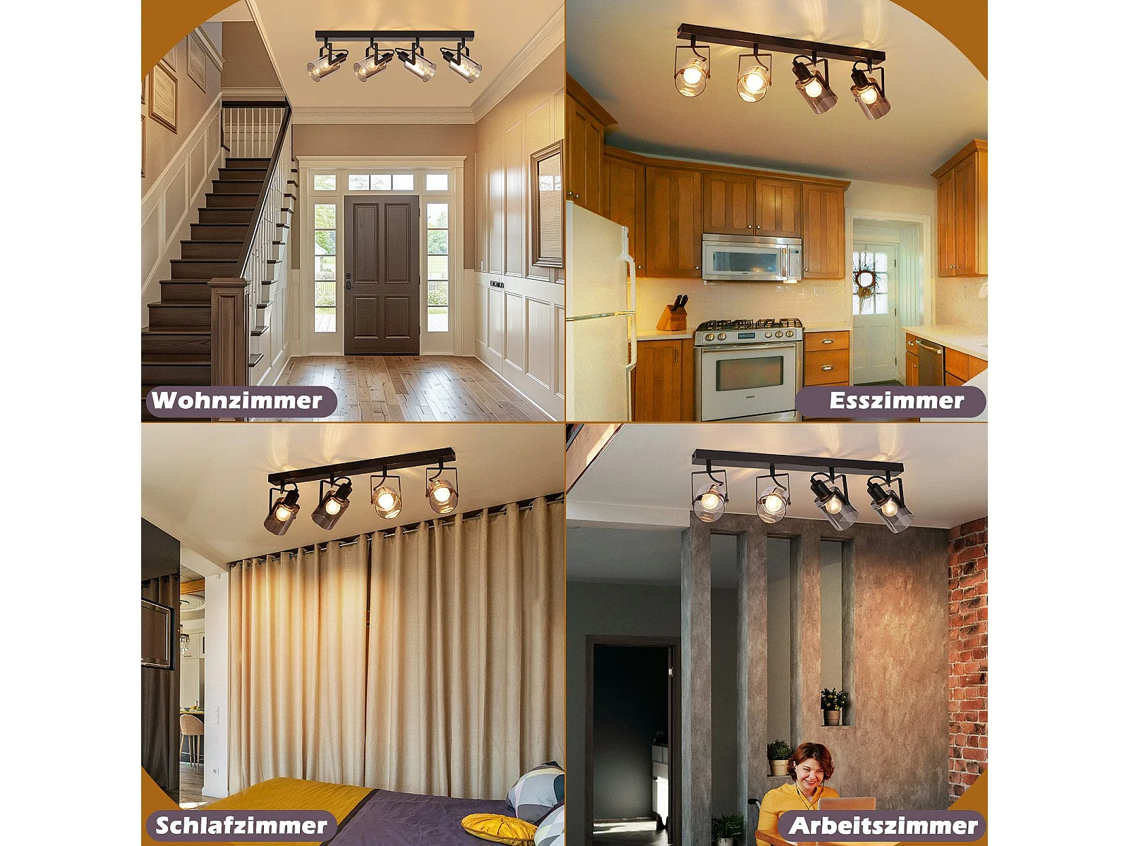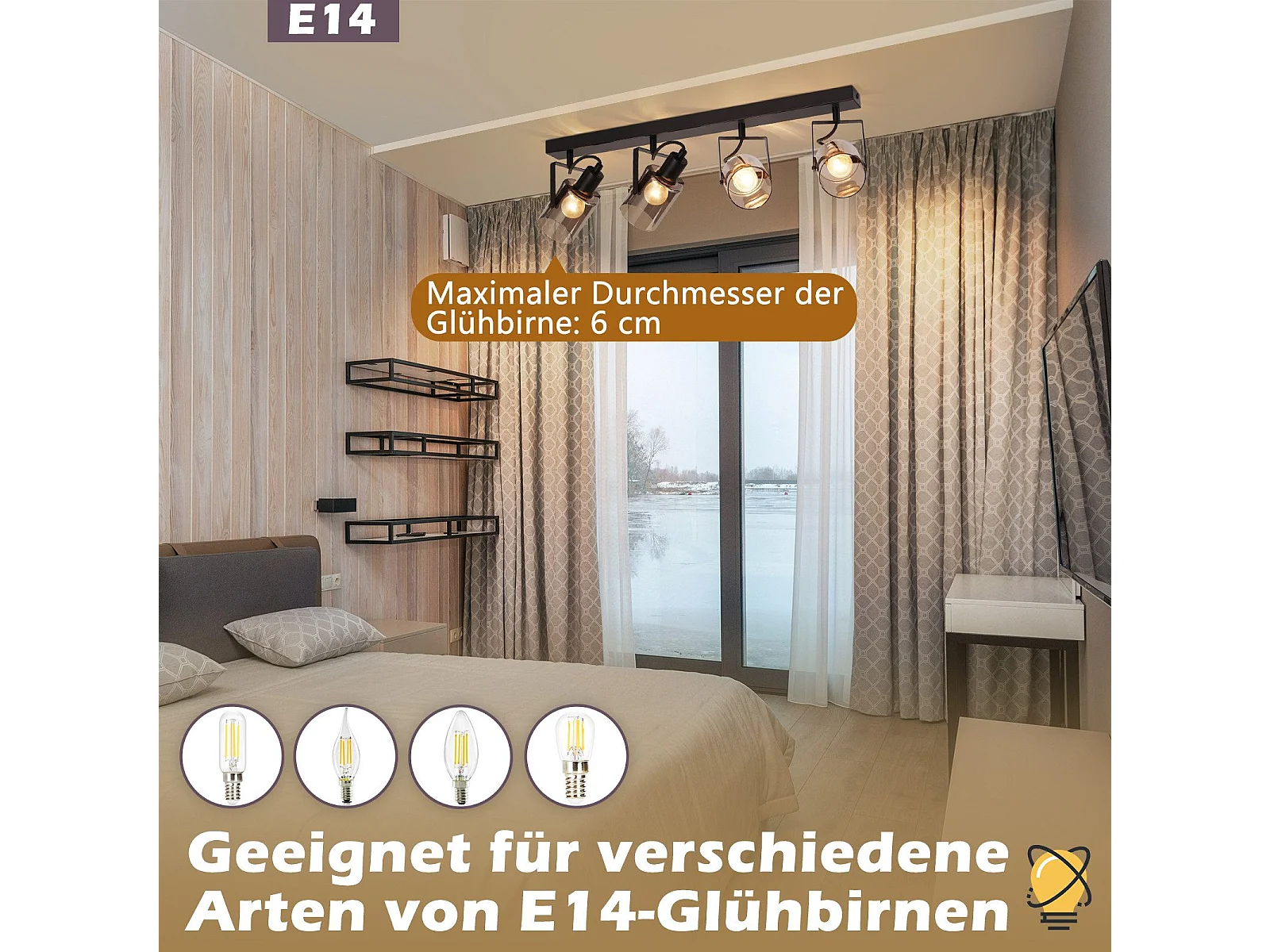 NETTLIFE Spot de plafond noirs 4 ampoules Plafonnier orientable 350° industriel vintage E14