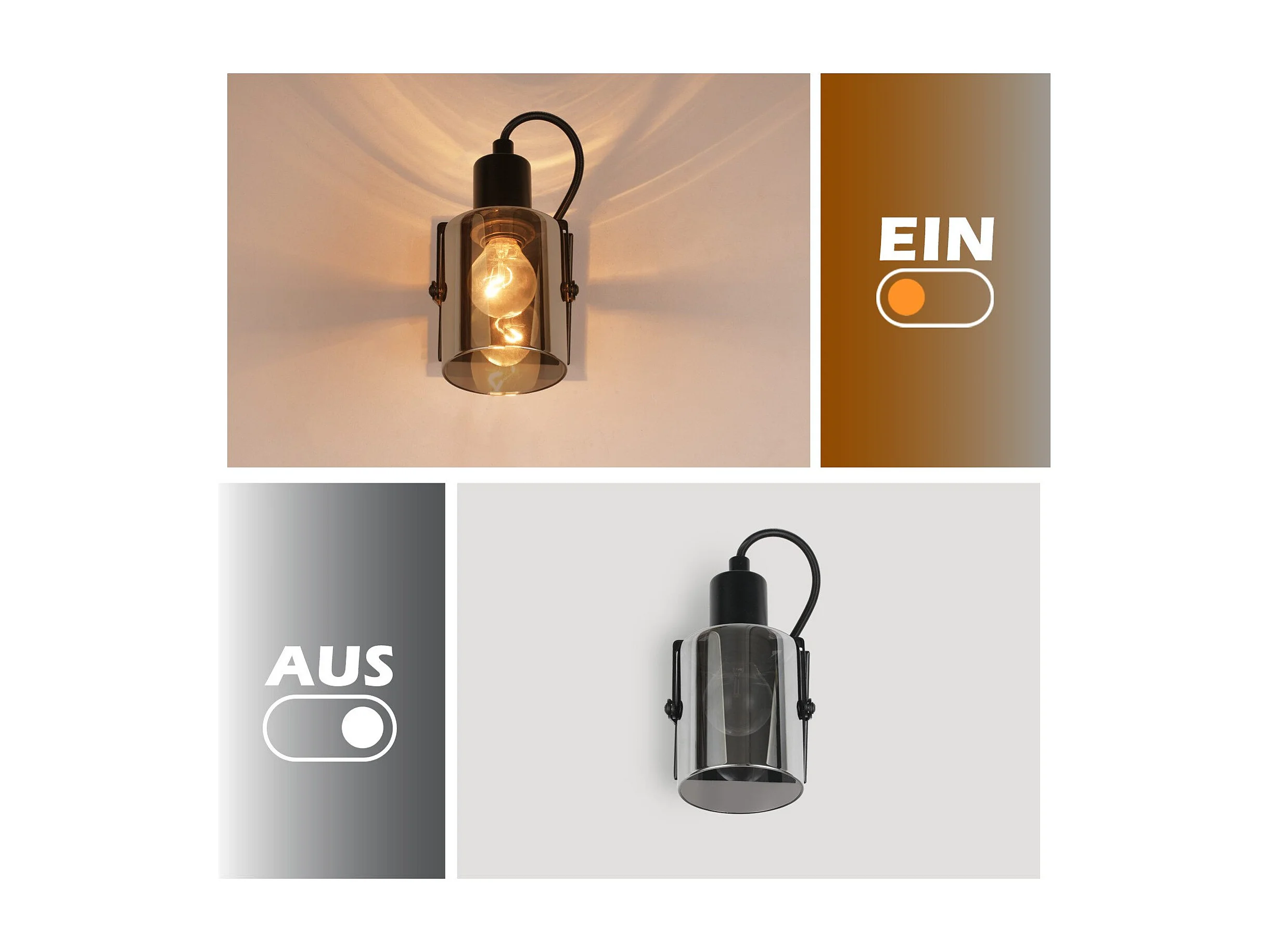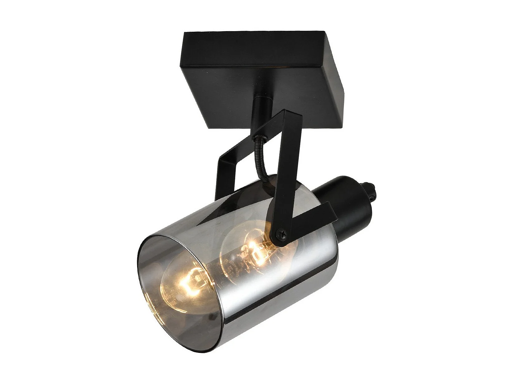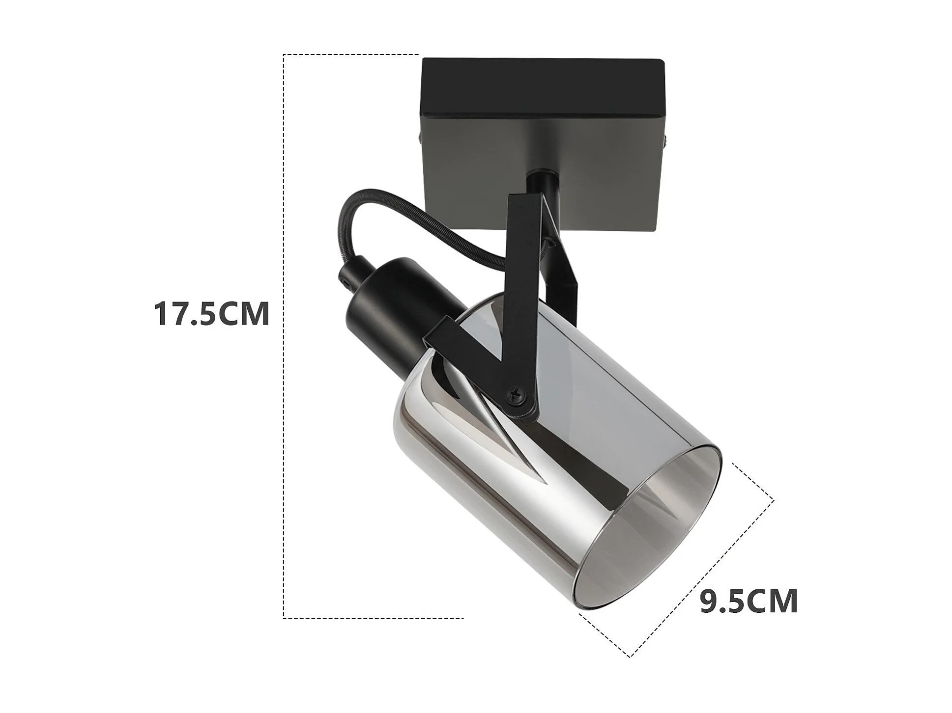 NETTLIFE Spot de plafond plafonnier vintage noir Plafonnier rétro en verre gris fumé 1 lampe E14