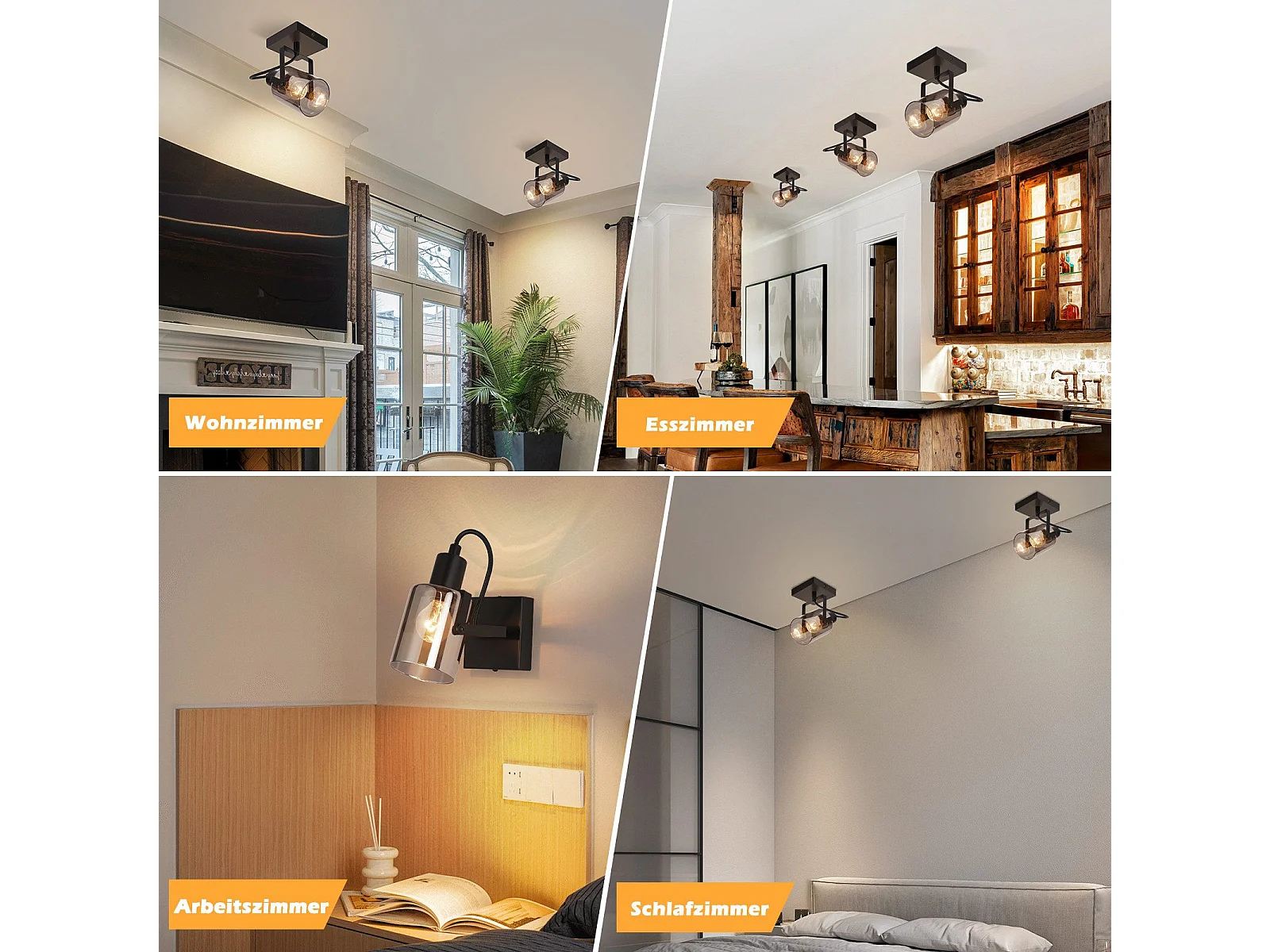 NETTLIFE Spot de plafond noirs 4 ampoules Plafonnier orientable 350° industriel vintage E14