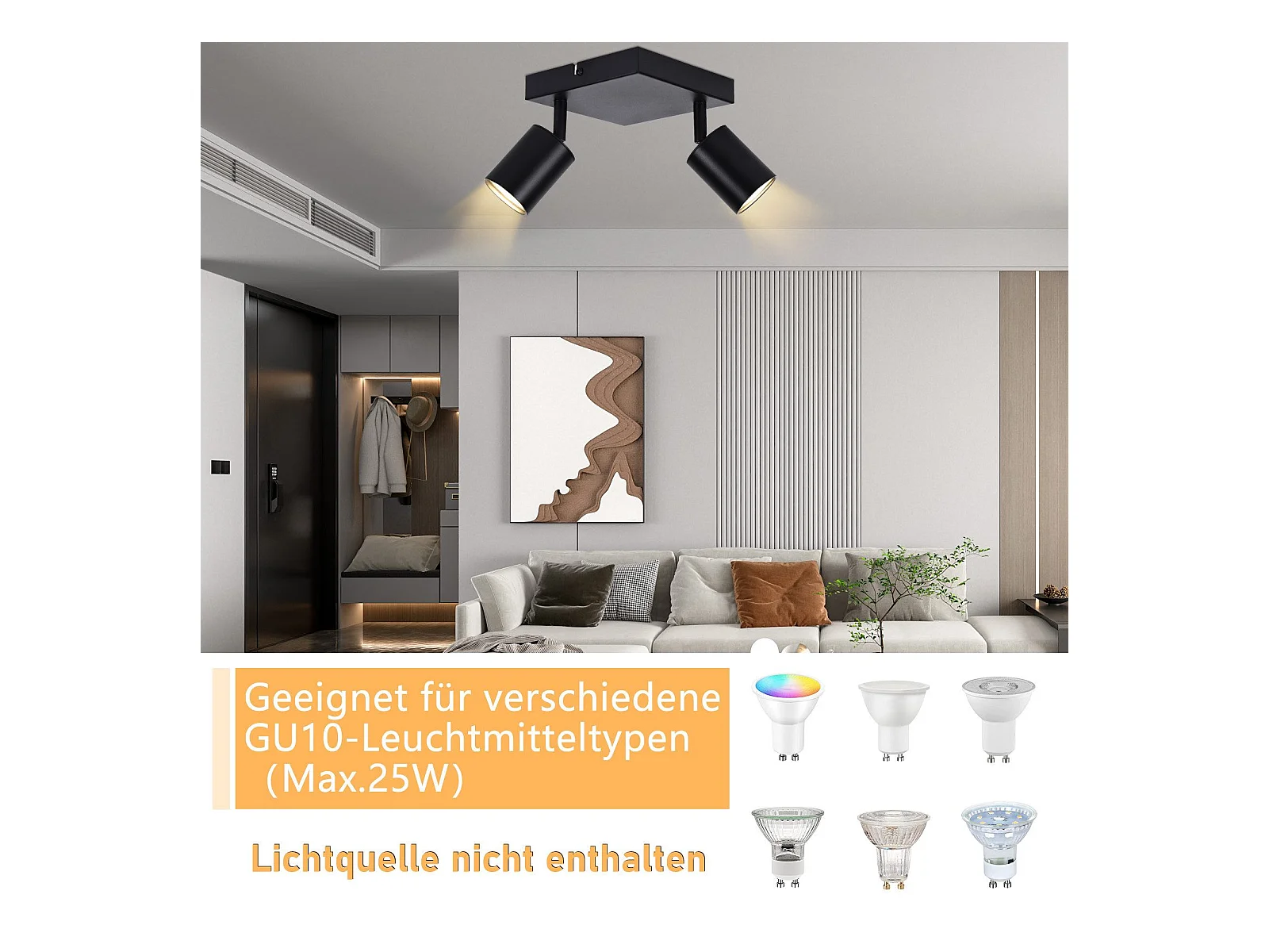 NETTLIFE Spot de plafond salon 2 ampoules noir GU10 plafonnier pivotant spot intérieur moderne pour chambre cuisine