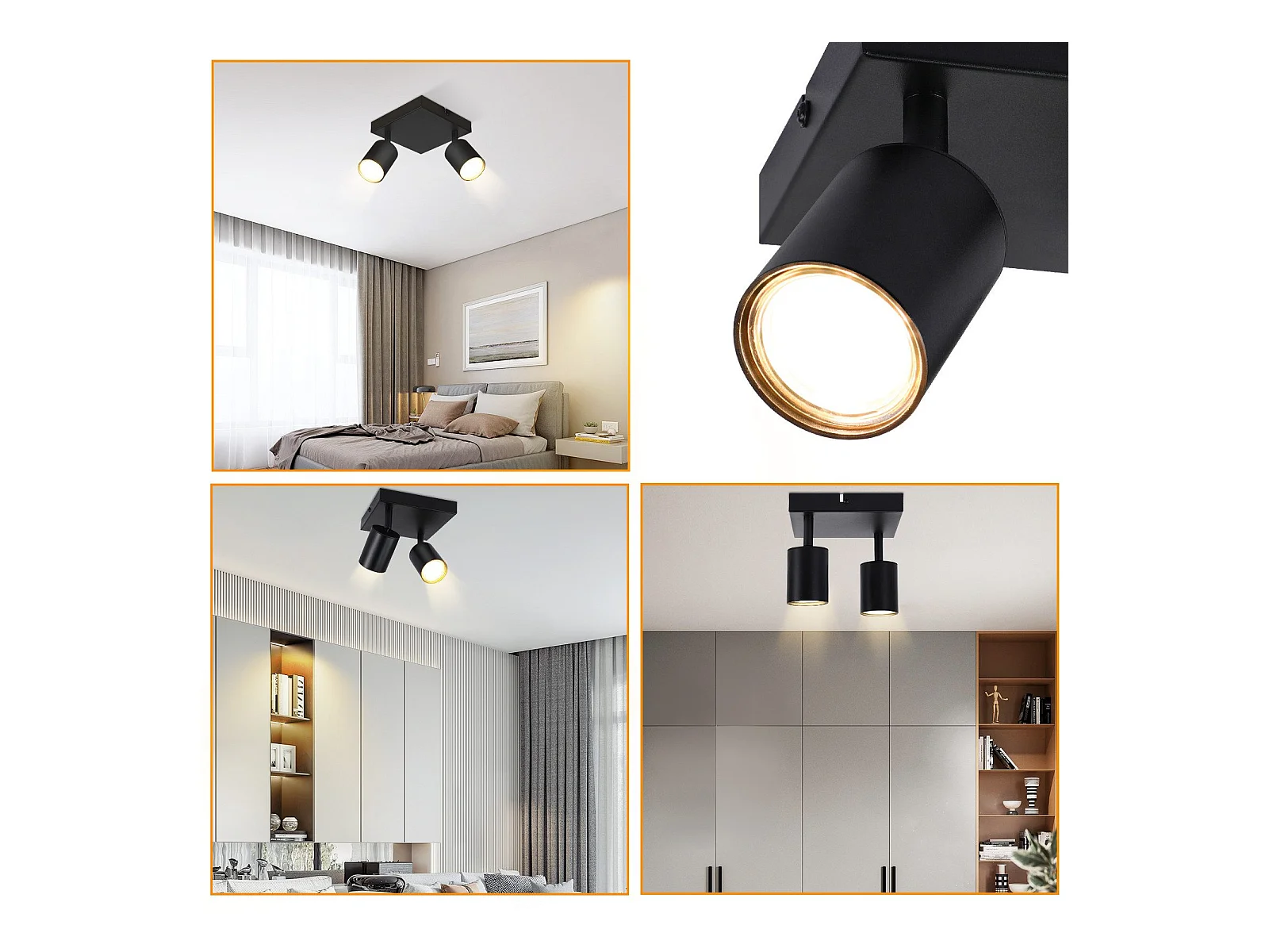 NETTLIFE Spot de plafond LED 2 ampoules moderne 4W noir 3000K orientable 350°