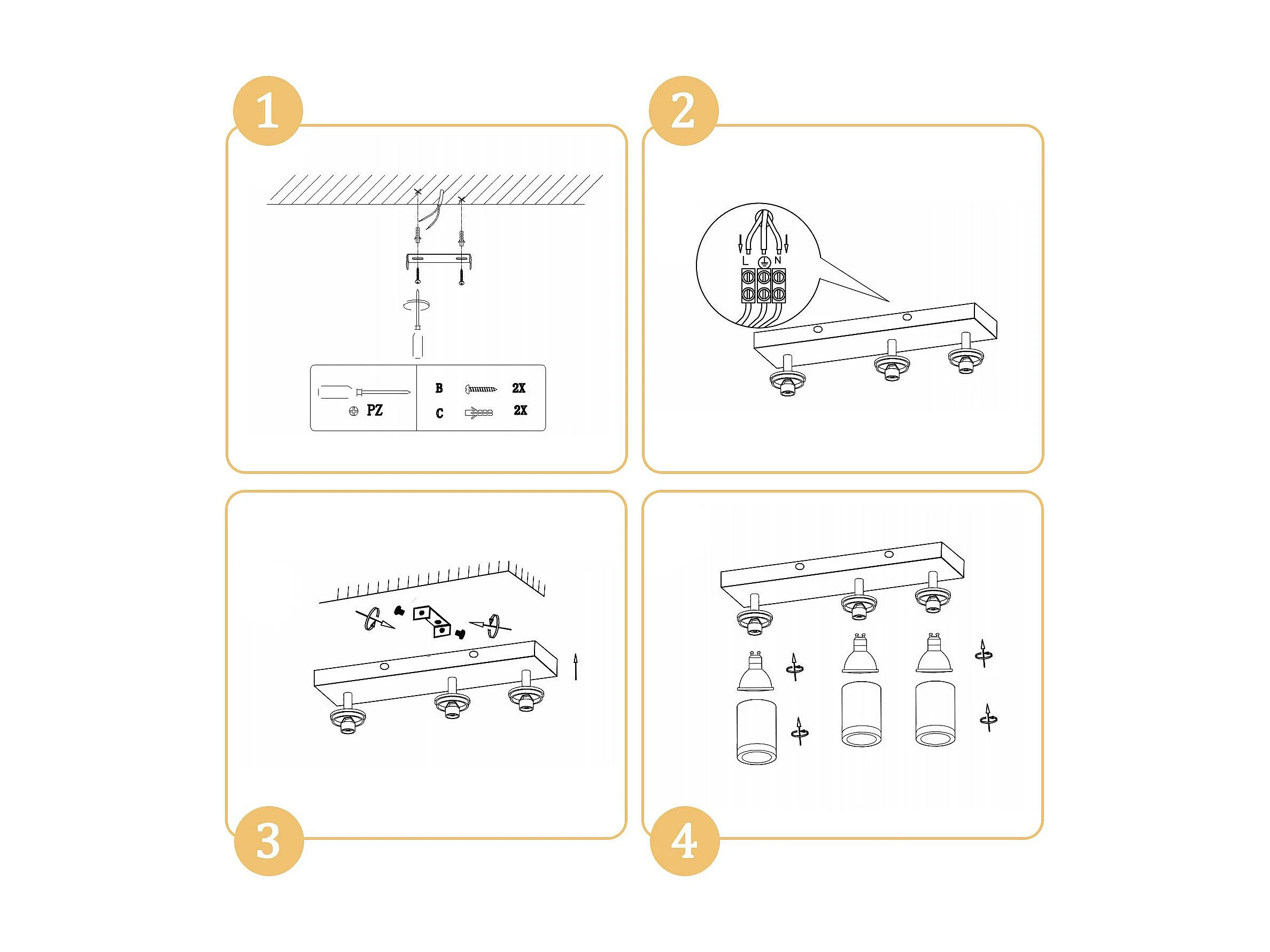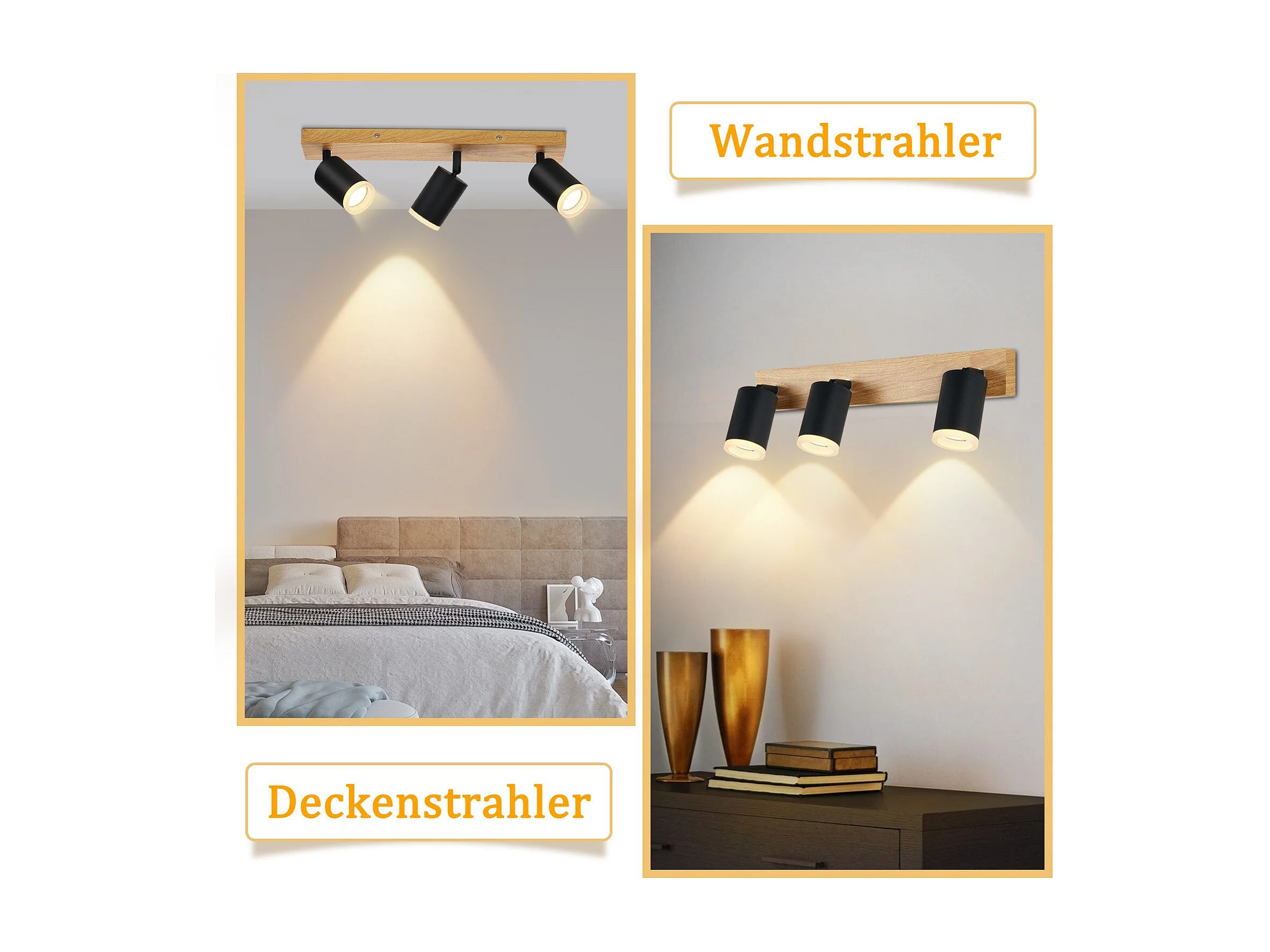 NETTLIFE Spot de plafond spots de plafond noirs lampe de cuisine GU10 spot mural en bois vintage pivotant sans ampoule orientable à 350°