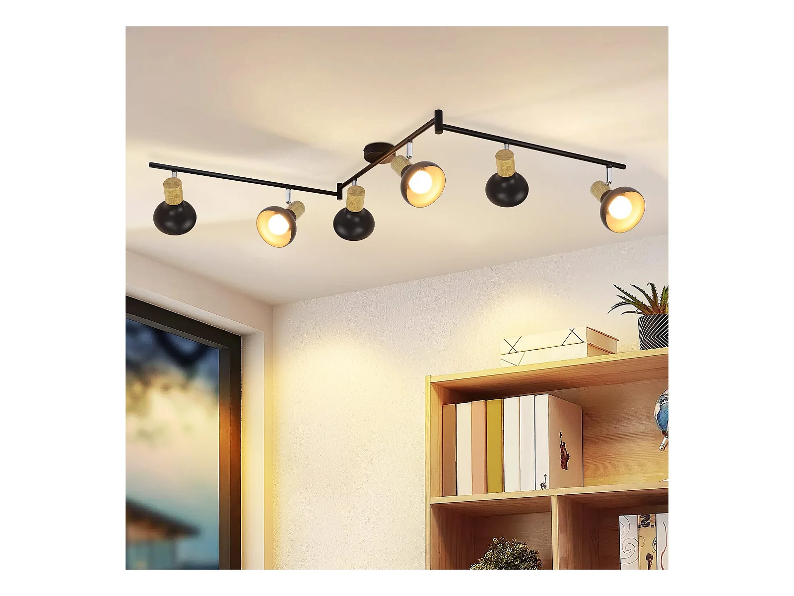 NETTLIFE Spot de plafond vintage E14 intérieur 350° orientable noir Pivotant 350° Industriel 6 flammes rond