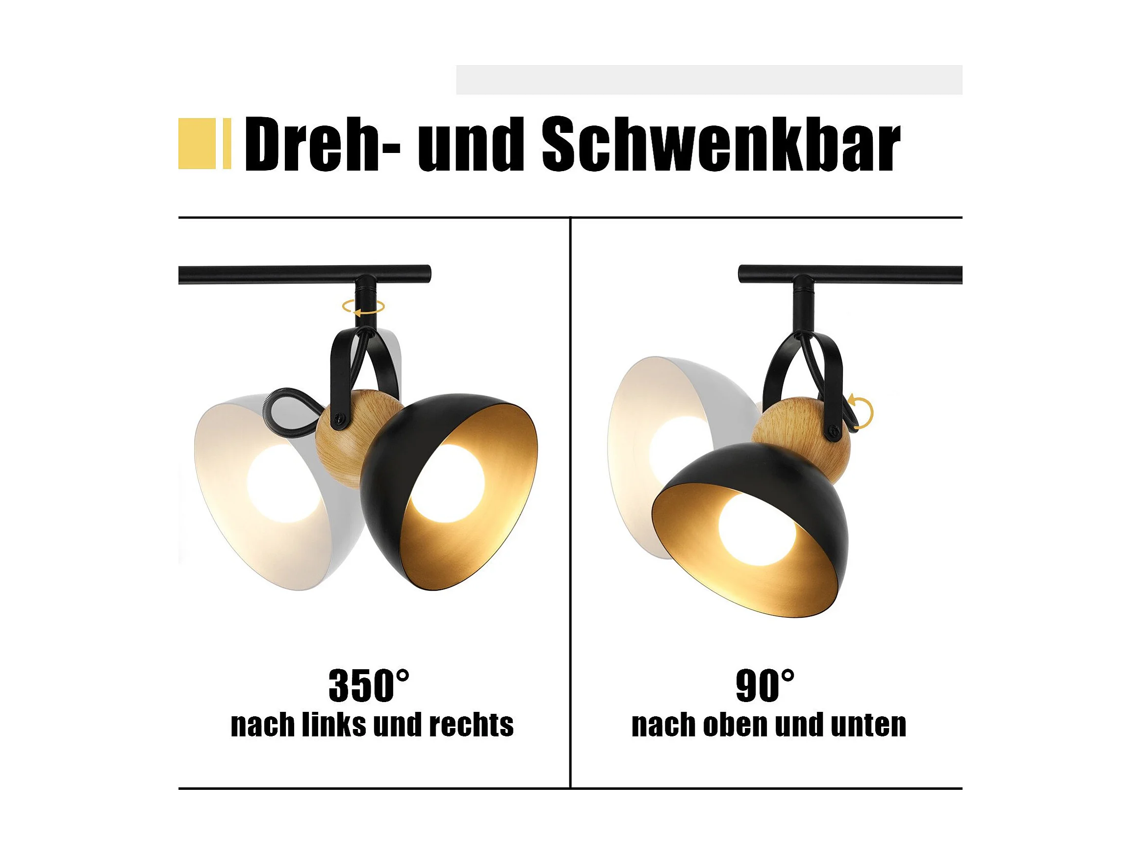 NETTLIFE Plafonnier plafonnier noir 2 ampoules Spot de plafond E27 vintage orientable 350°industriels