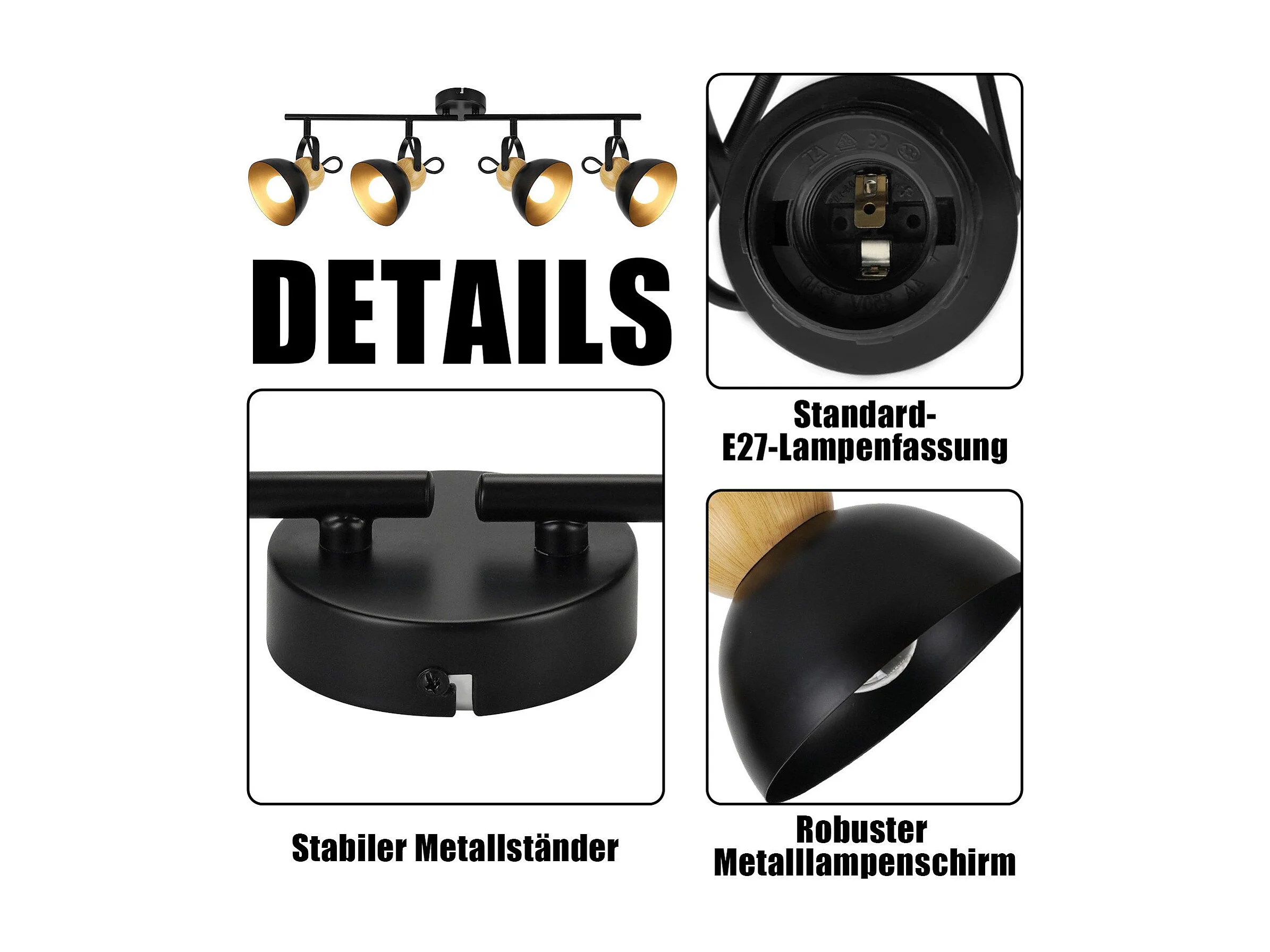 NETTLIFE Spot de plafond vintage noir E27 orientable 350° lampe de couloir rétro métal industriel 4 flammes