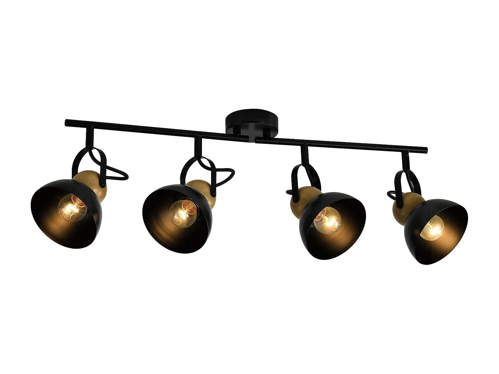Spot De Plafond Vintage Noir 4 Flammes E27 Pivotant 350° Industriel Pivotant