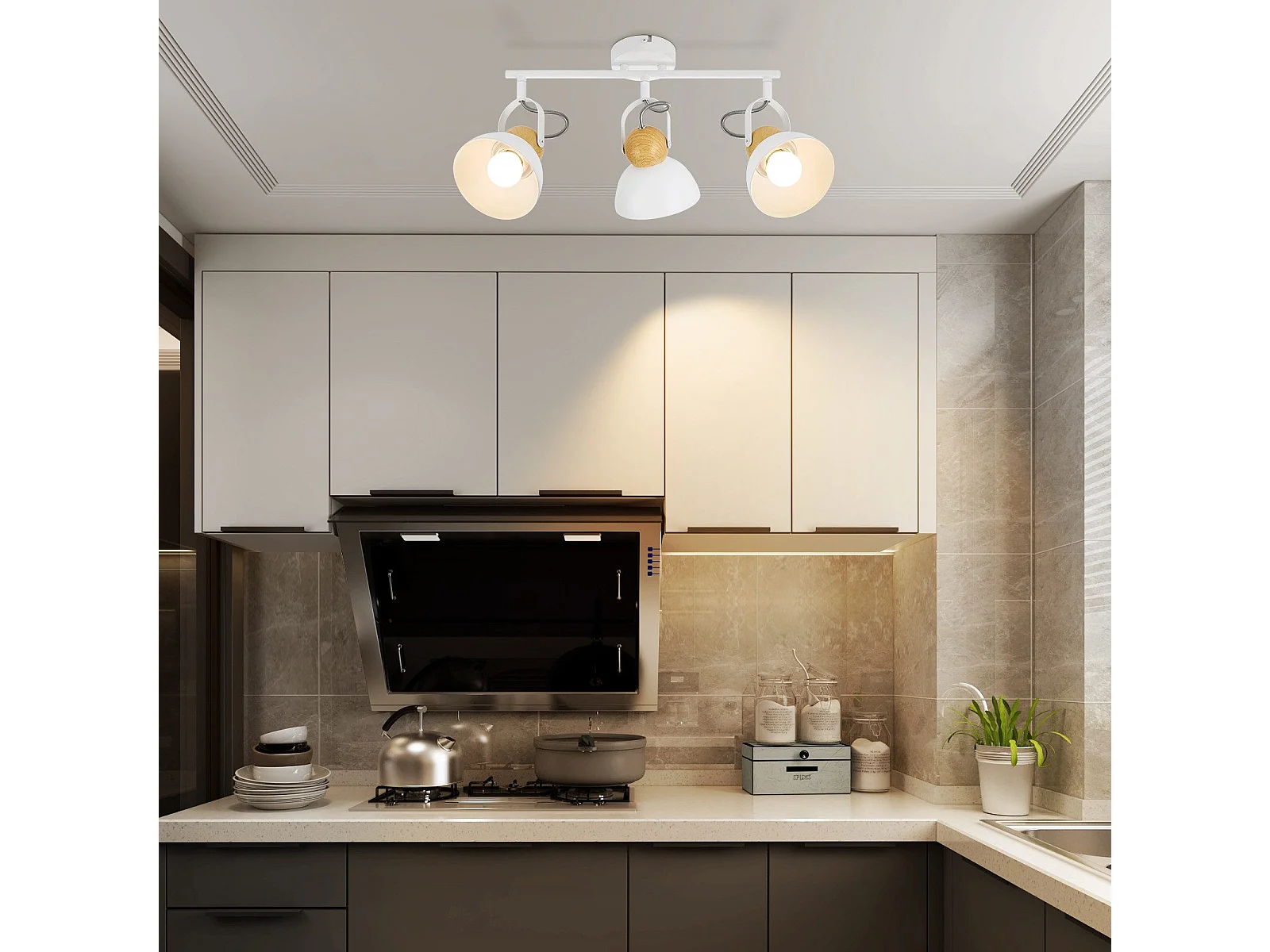 NETTLIFE Spot de Plafond 3 Flammes Orientable à 350° Vintage E14 de conception de haute qualité en bois veiné