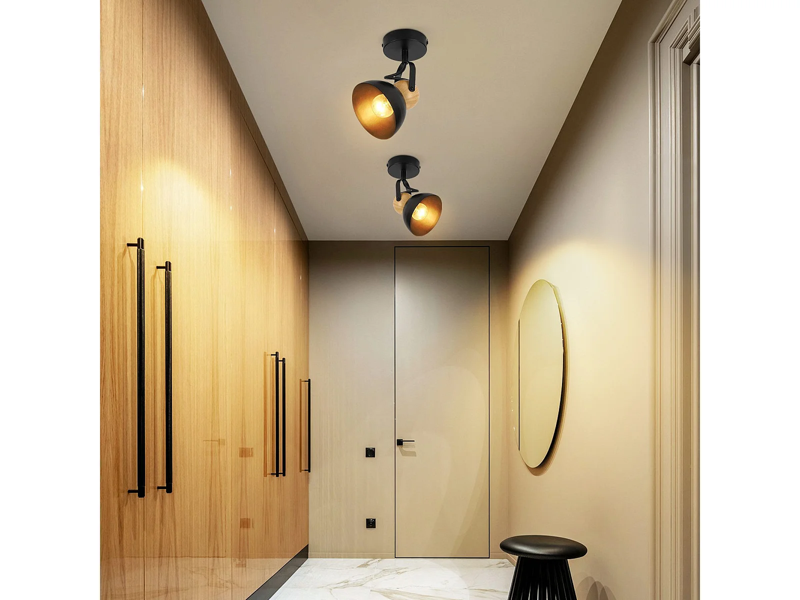 NETTLIFE Plafonnier 2 Ampoules spot de plafond vintage spots bois 350° orientables E14 rétro