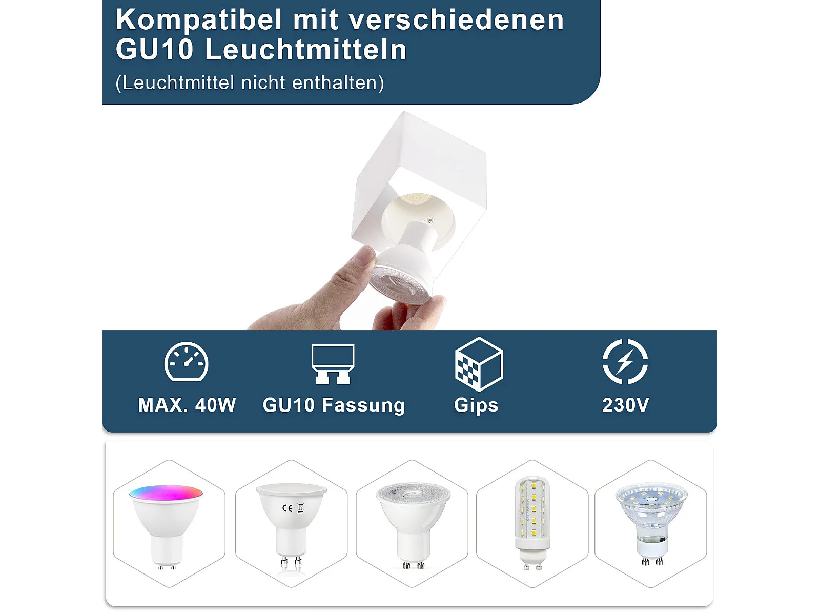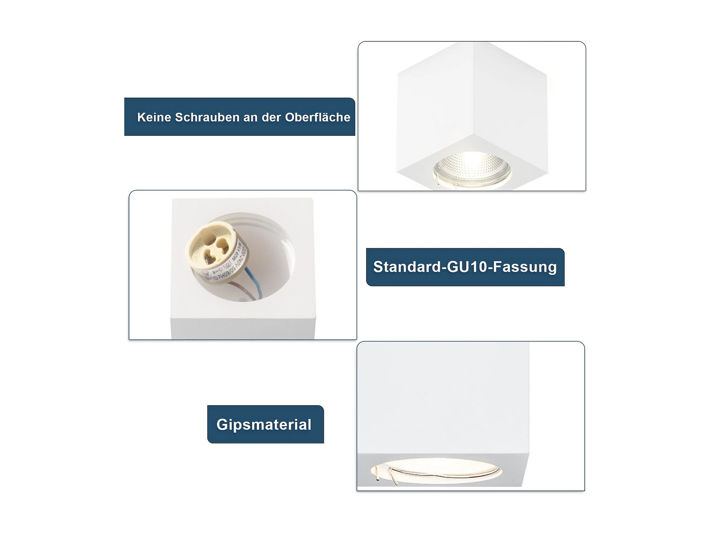 NETTLIFE 4 Spot en saillie blanc GU10 spot en saillie carré 40W plâtre petit plafonnier moderne
