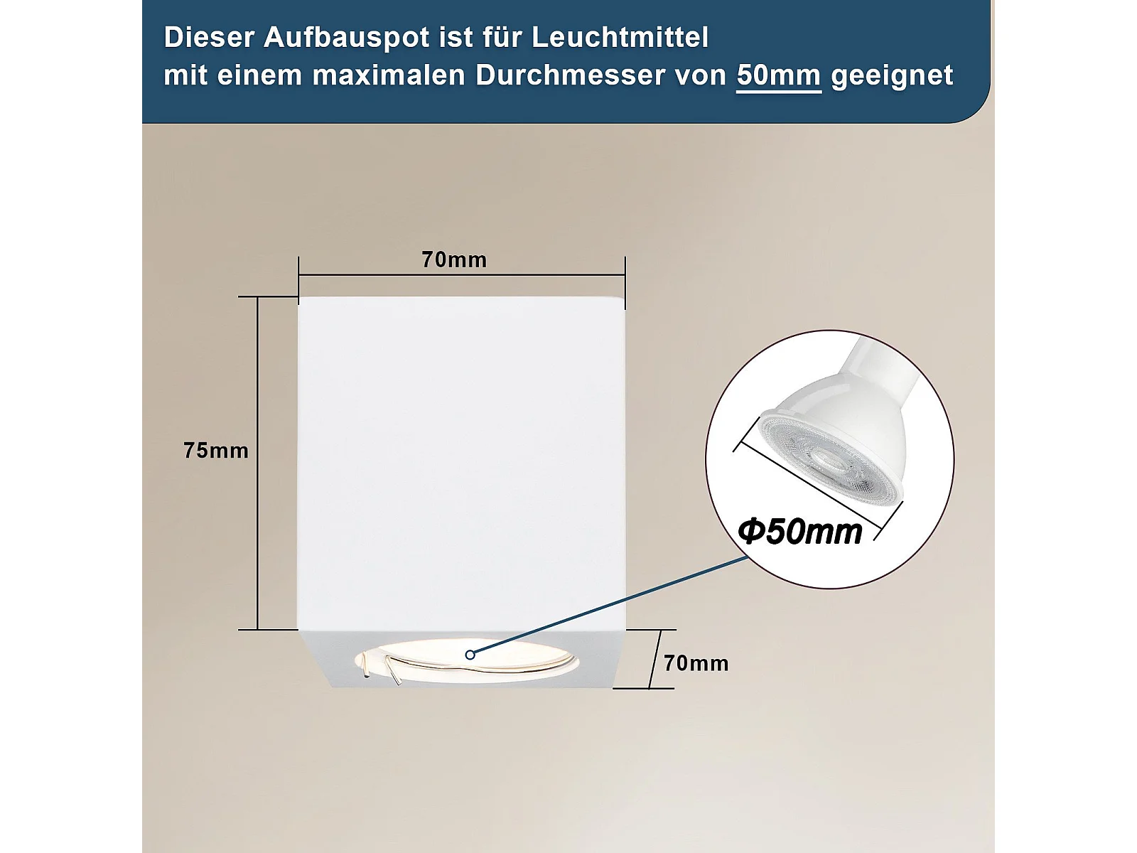 NETTLIFE Spot en saillie blanc GU10 spot en saillie carré 40W plâtre petit plafonnier moderne