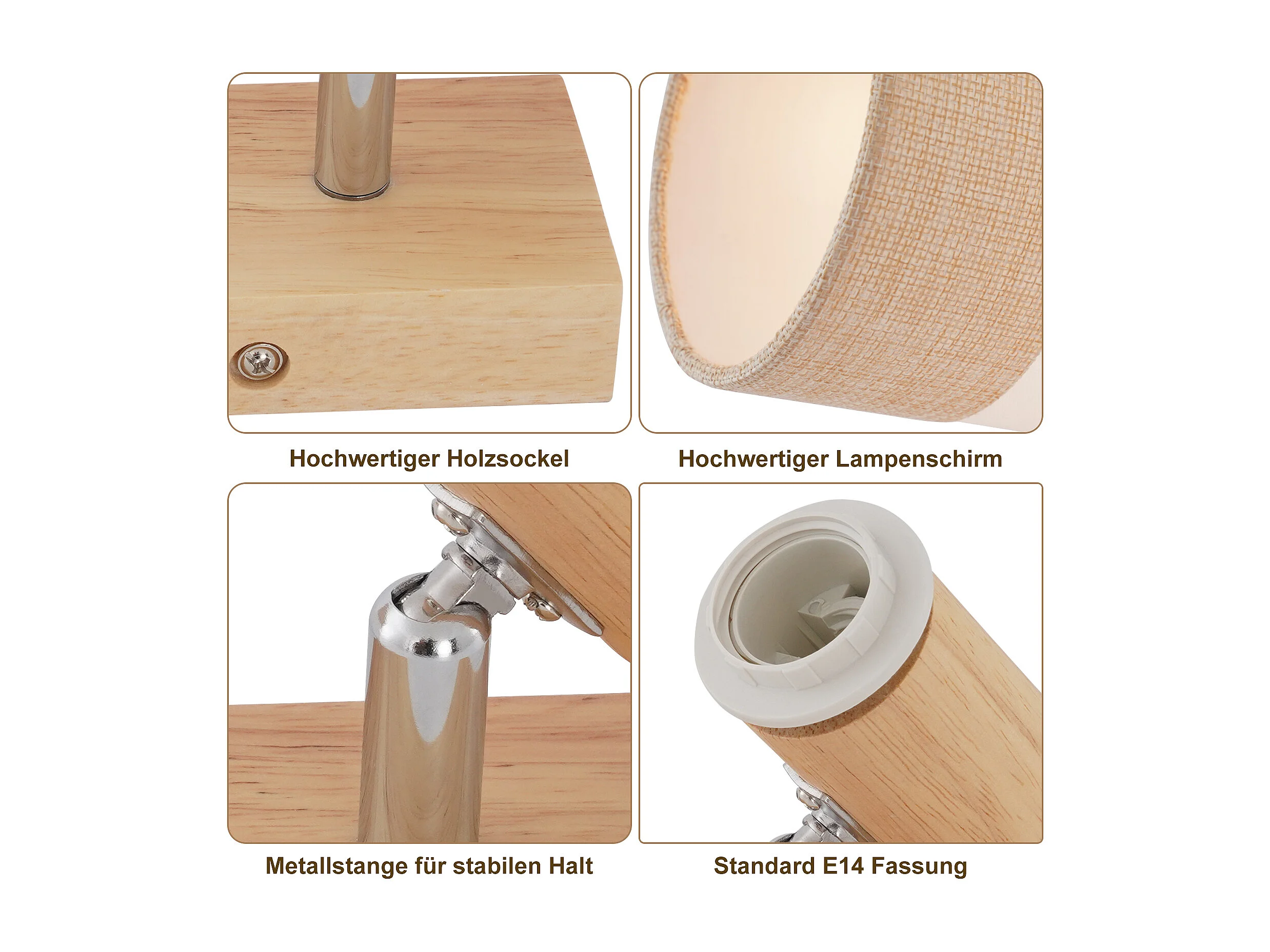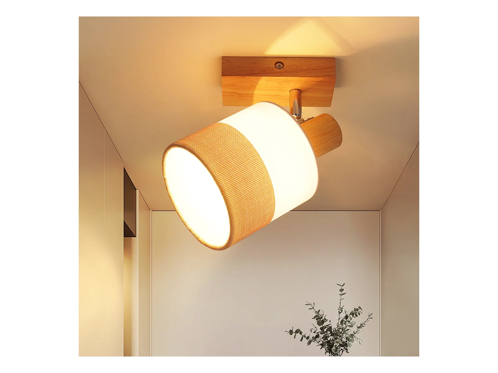 NETTLIFE Plafonnier spot 4 flammes bois - plafonnier vintage E14 abat-jour tissu rétro orientable 350°
