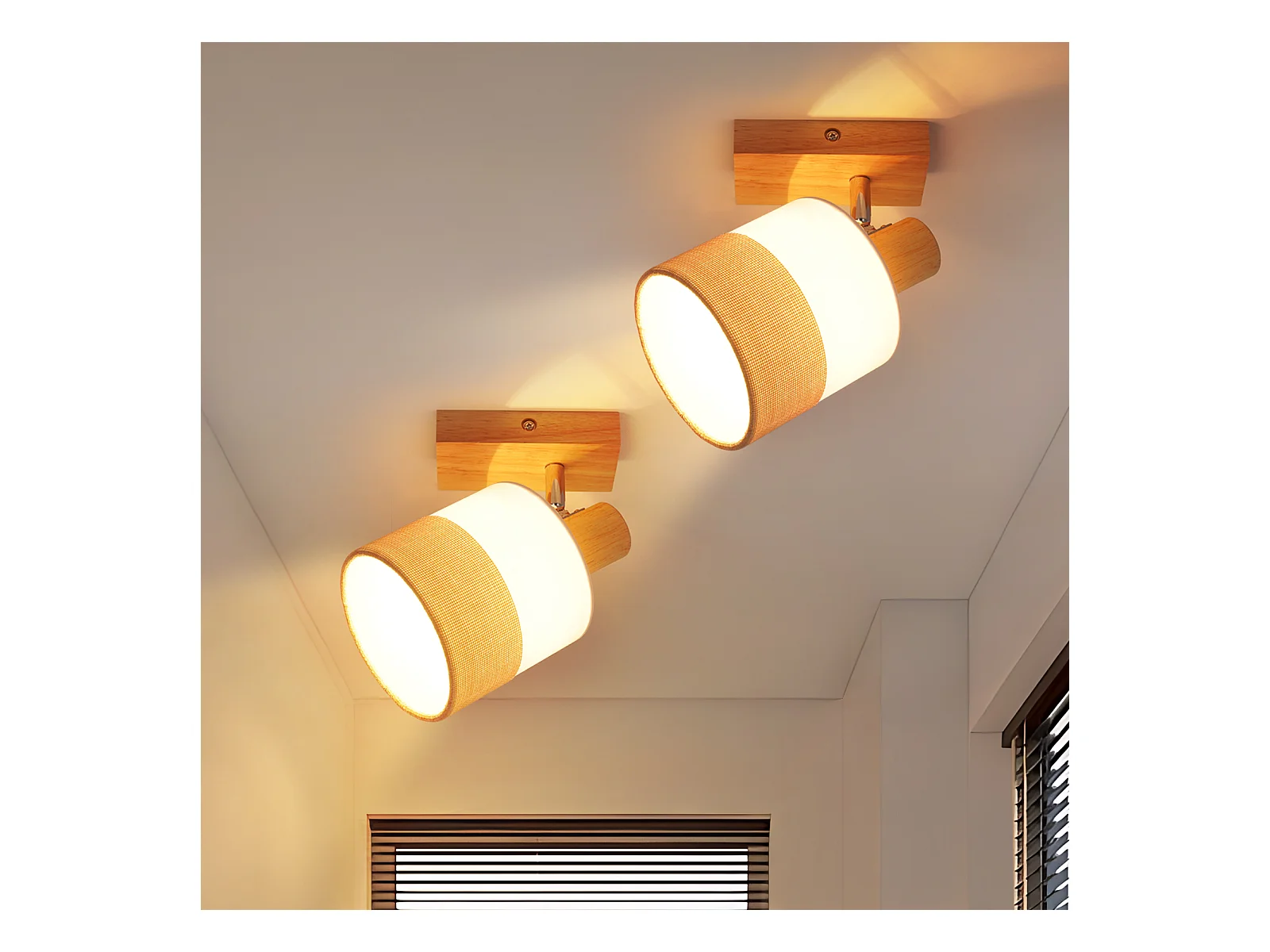 NETTLIFE Plafonnier LED 2 feux spot plafonnier couloir lampe bois E14 vintage orientable 350°