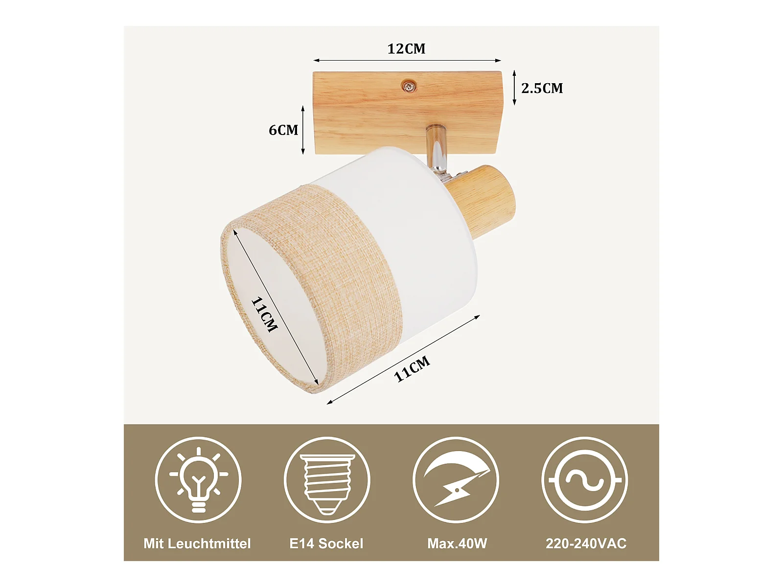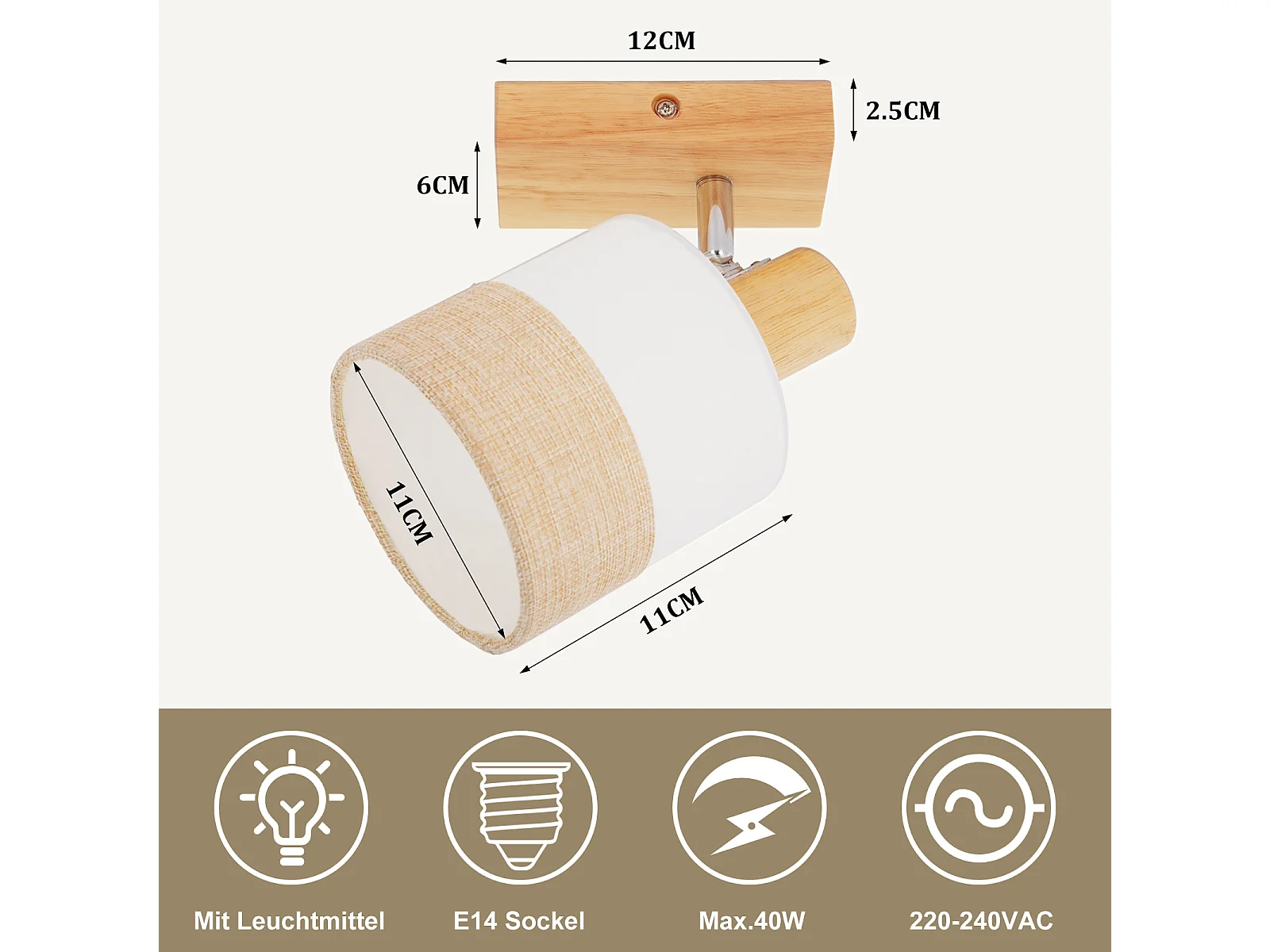 NETTLIFE Spot LED plafond 1 flamme lampe couloir - plafonnier bois plafonnier E14 vintage orientable 350° rétro