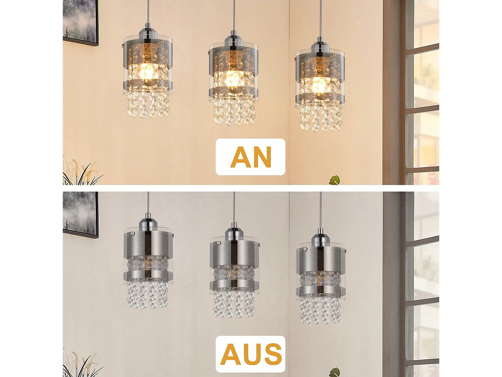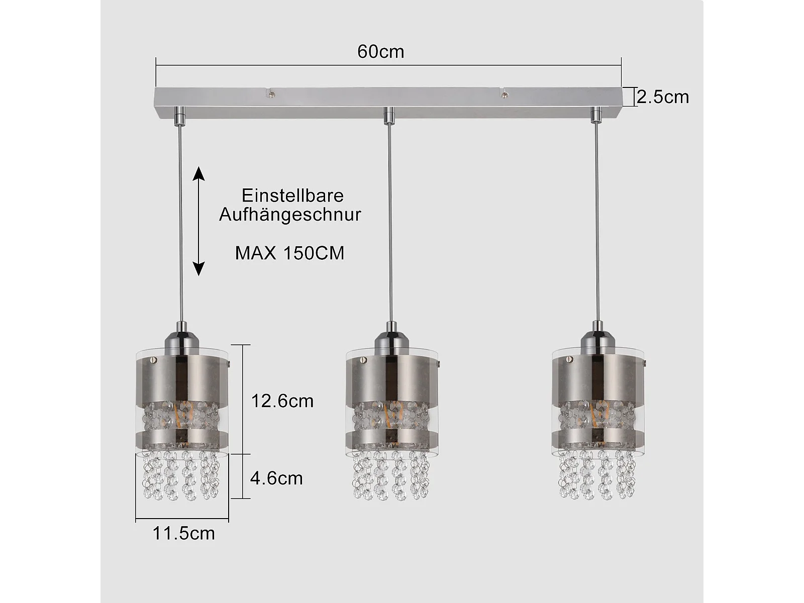 NETTLIFE Suspension 3 Ampoules E27 Moderne Diam.60CM Hauteur Réglable Design Verre et Cristal pour Salon Chambre Cuisine Salle à Manger Max.25w