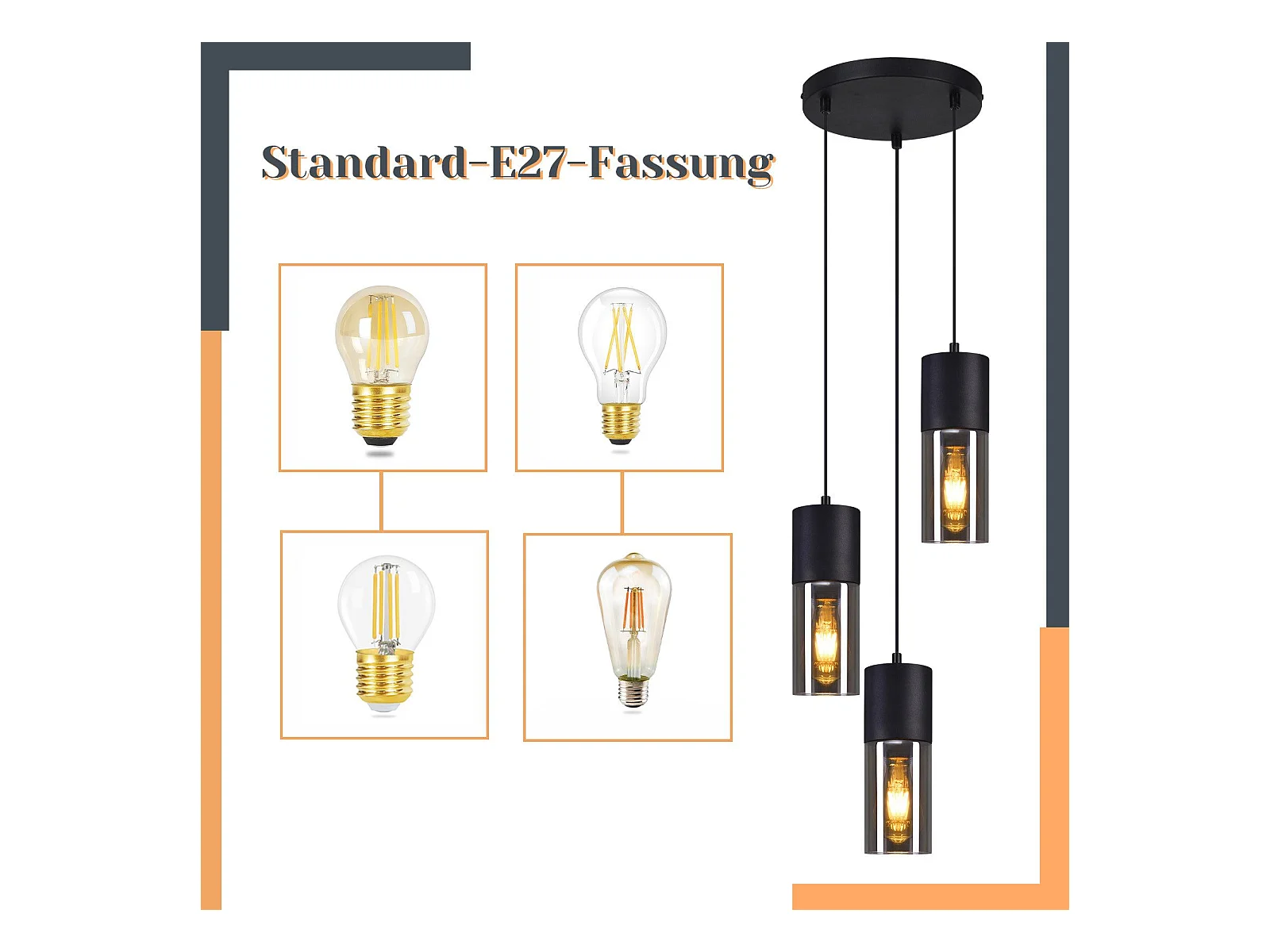 NETTLIFE Suspension table à manger suspension E27 - suspension 3 ampoules orientable LED moderne
