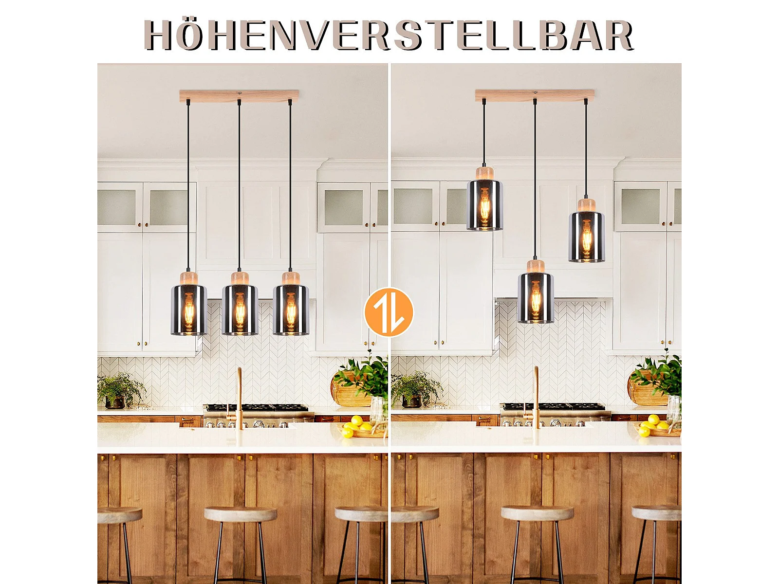 NETTLIFE Suspension en bois, lampe suspendue E27, lampe de table à manger vintage en verre