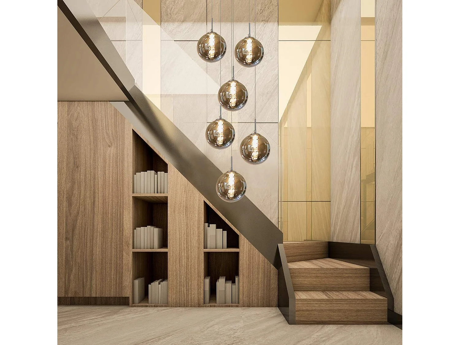NETTLIFE Suspension G9 verre gris Diam.31cm 6 ampoules couleur cuisine salon lampe chambre lampe couloir