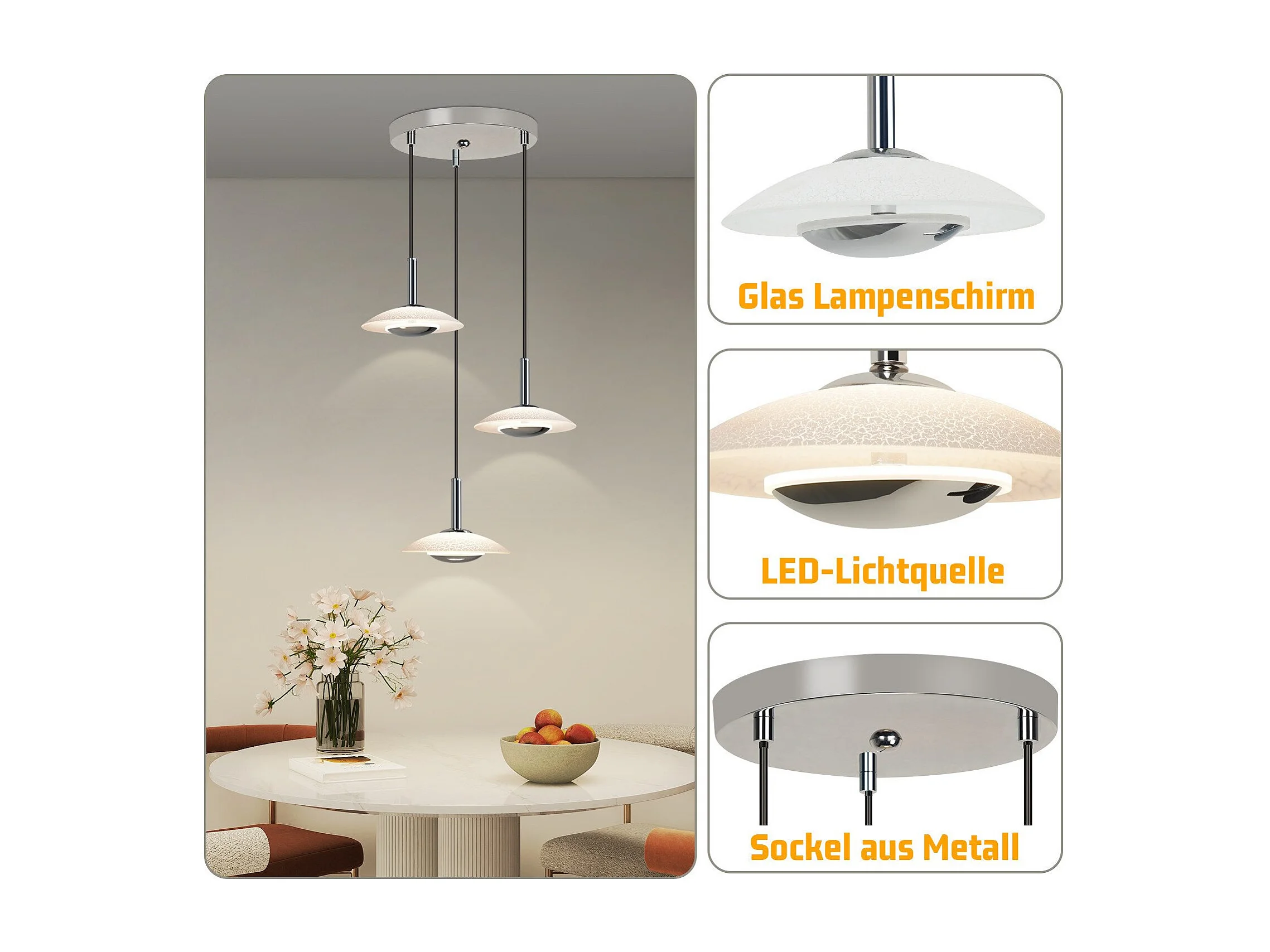 NETTLIFE Suspension LED lampe suspendue table à manger design moderne lampe suspendue salle à manger 3000K blanc chaud 3 flammes