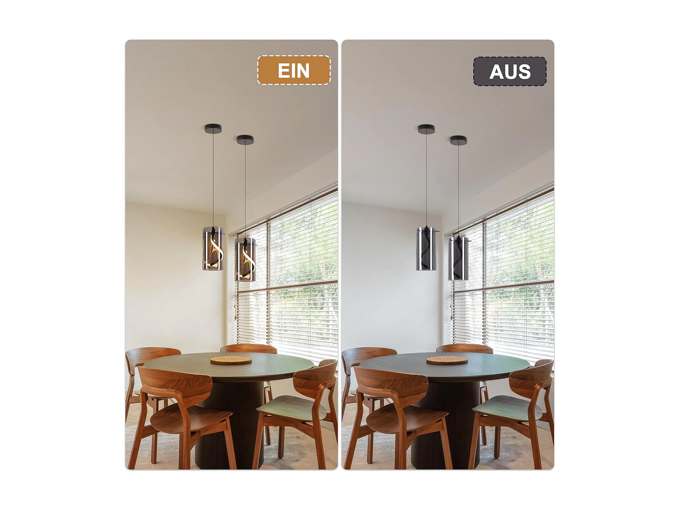 Nettlife Suspension LED vintage pour table à manger - Suspension en verre 1 lumière 8W style rétro, gris fumé, lumière blanc chaud 3000K