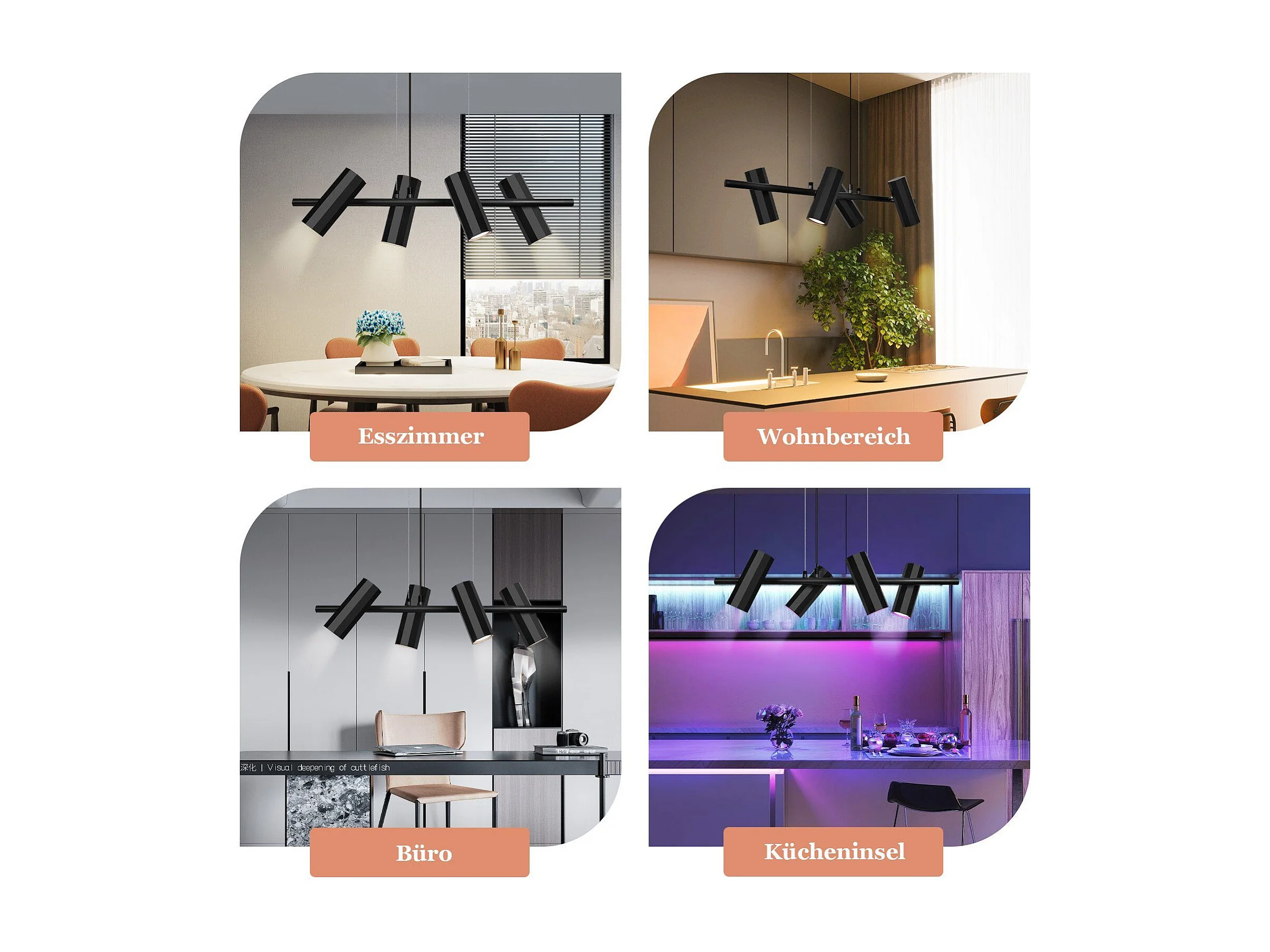 NETTLIFE Suspension métal noir diamètre 60 cm GU10 4 flammes salon industriel salle à manger lampe moderne pour intérieur cuisine chambre