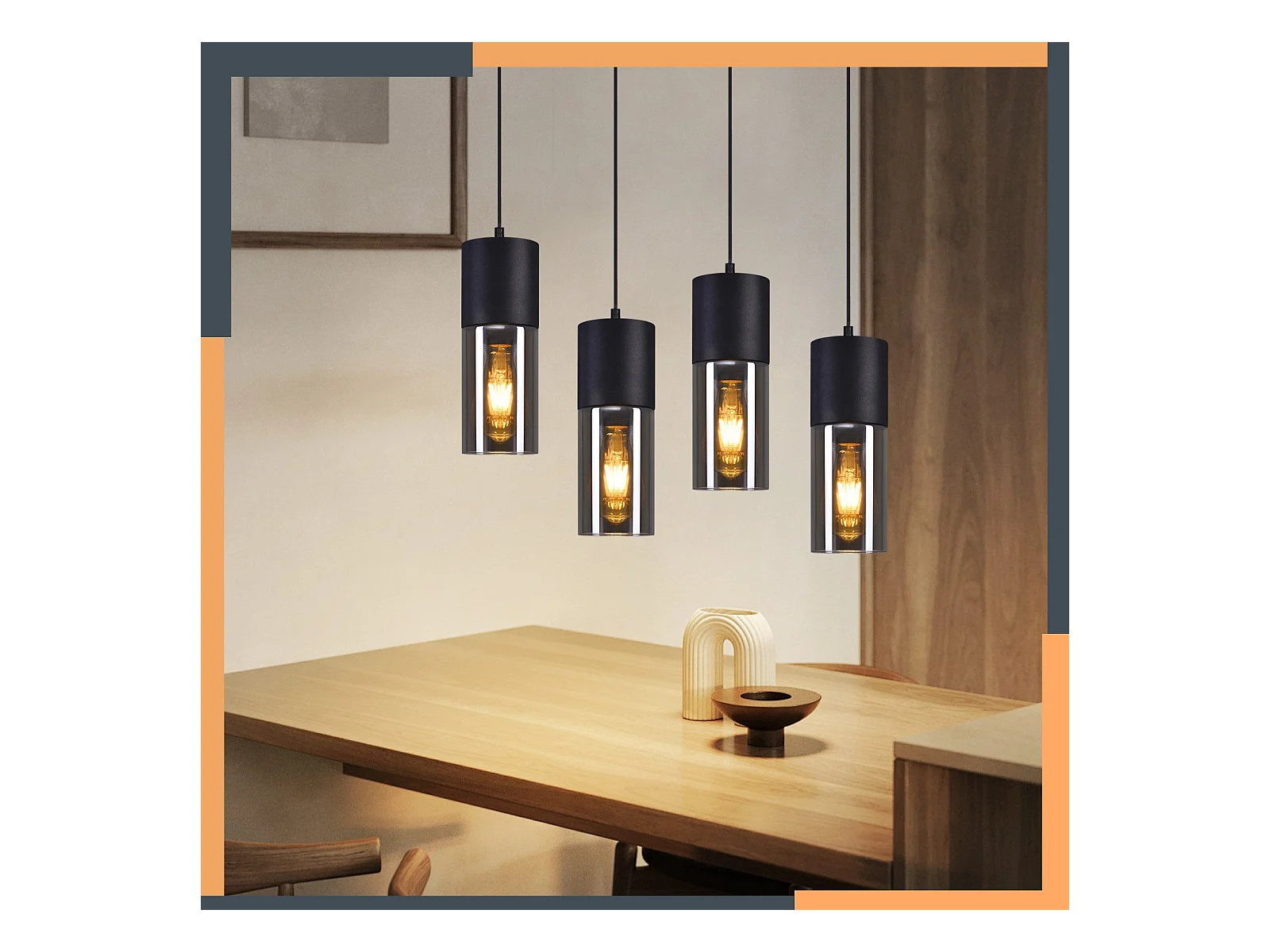 NETTLIFE Suspension pour table à manger, lampe suspendue en verre, 4 flammes, lampe de salle à manger vintage, E27, rétro