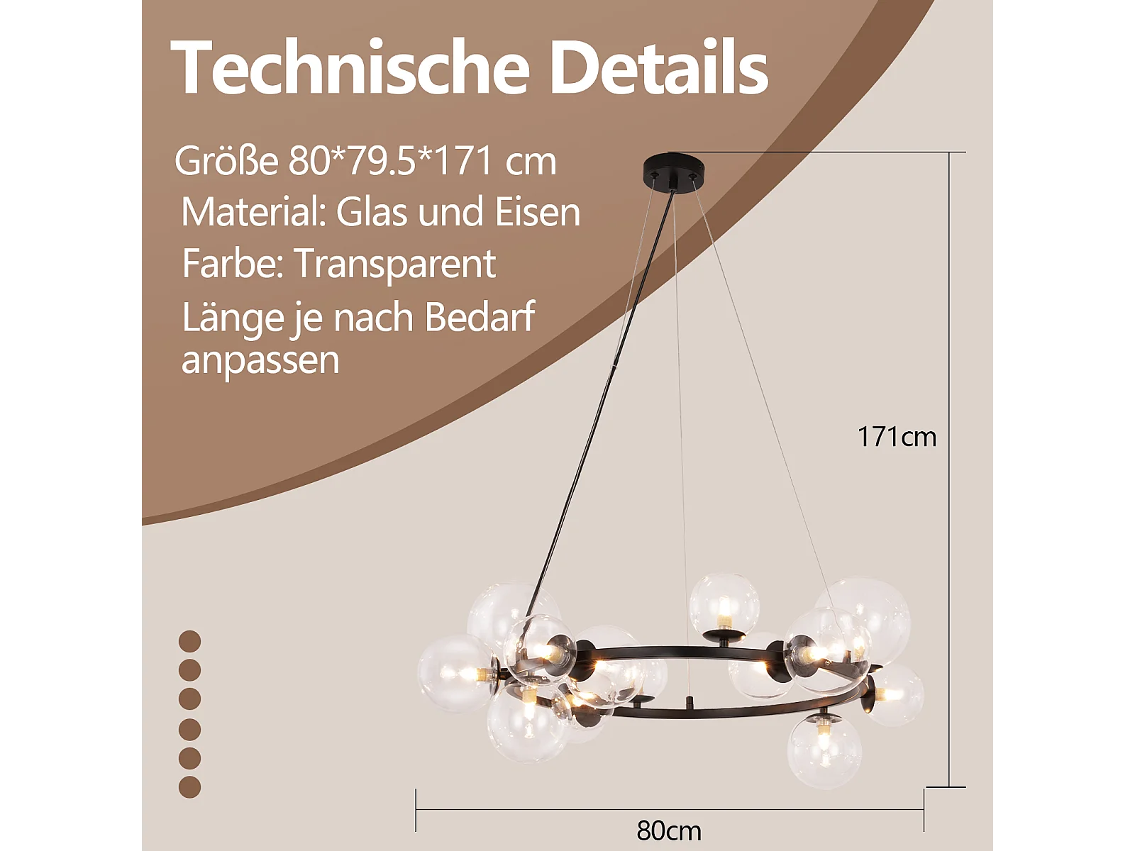 NETTLIFE Suspension table à manger lampe suspendue salon - G9 14 flammes escalier transparent moderne
