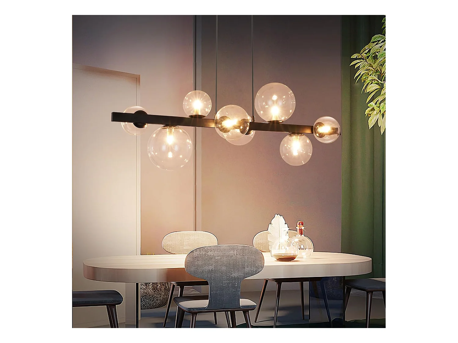 NETTLIFE Suspension table à manger lampe suspendue salon suspension G9 suspension 8 ampoules transparente