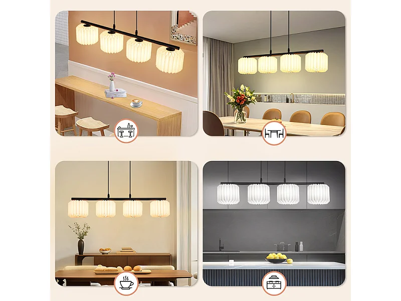 NETTLIFE Suspension table à manger lampe suspendue vintage - lampe suspendue salon salle à manger lampe 4 flammes blanc