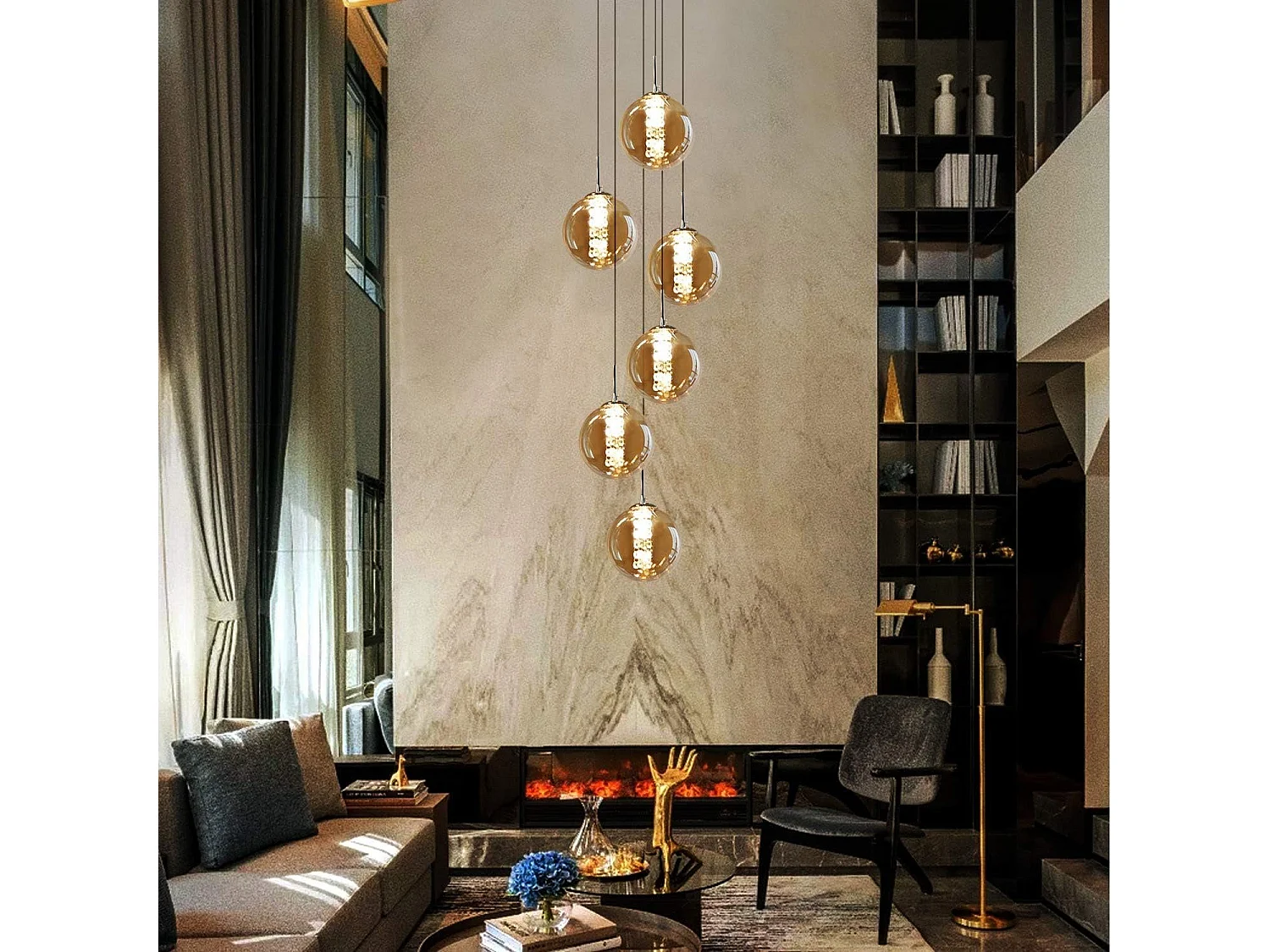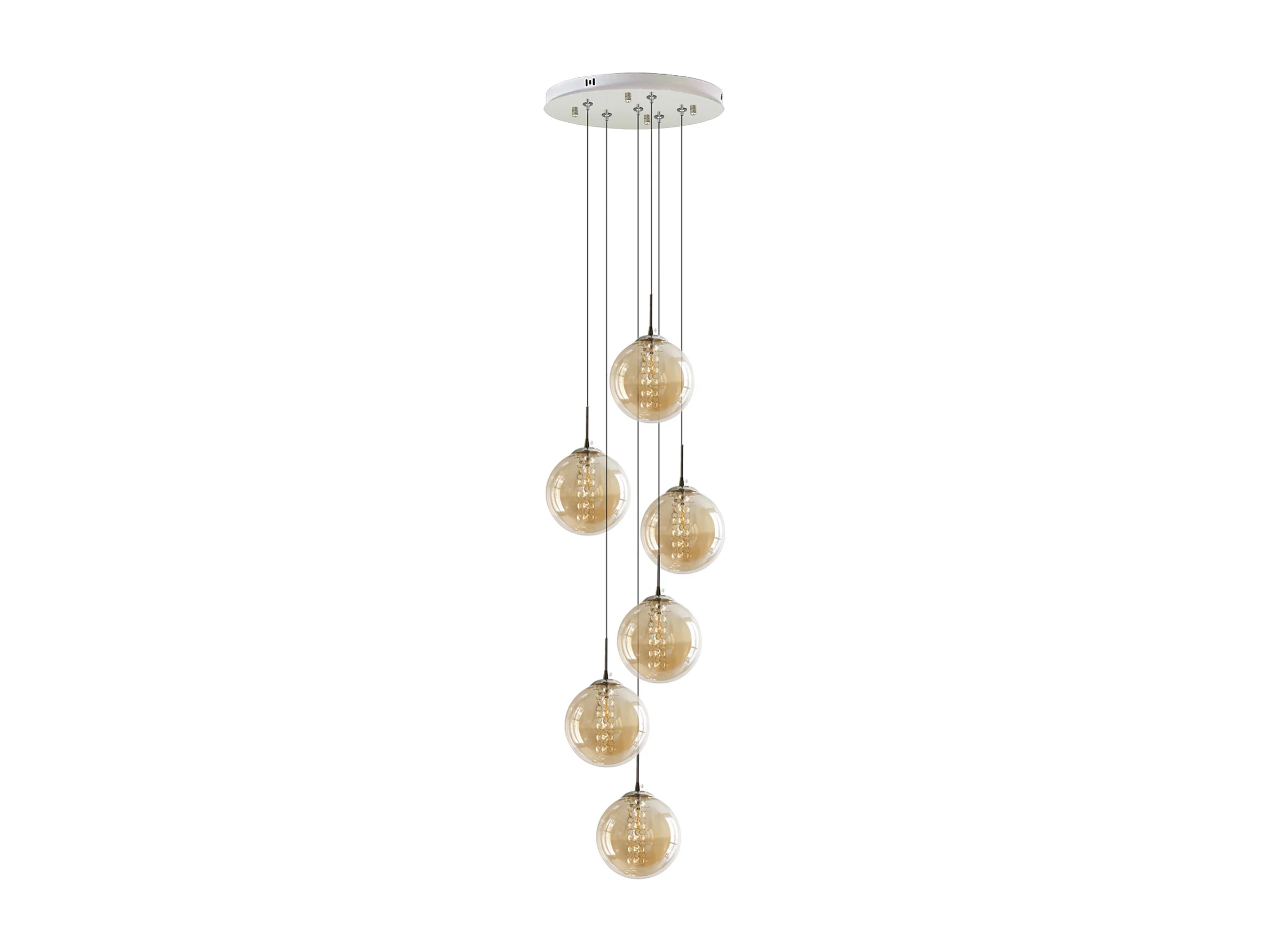 NETTLIFE Suspension verre Diam.31cm G9 ambre table à manger boule réglable en hauteur 6 lampes dans la cuisine lampe de salon lampe de chambre