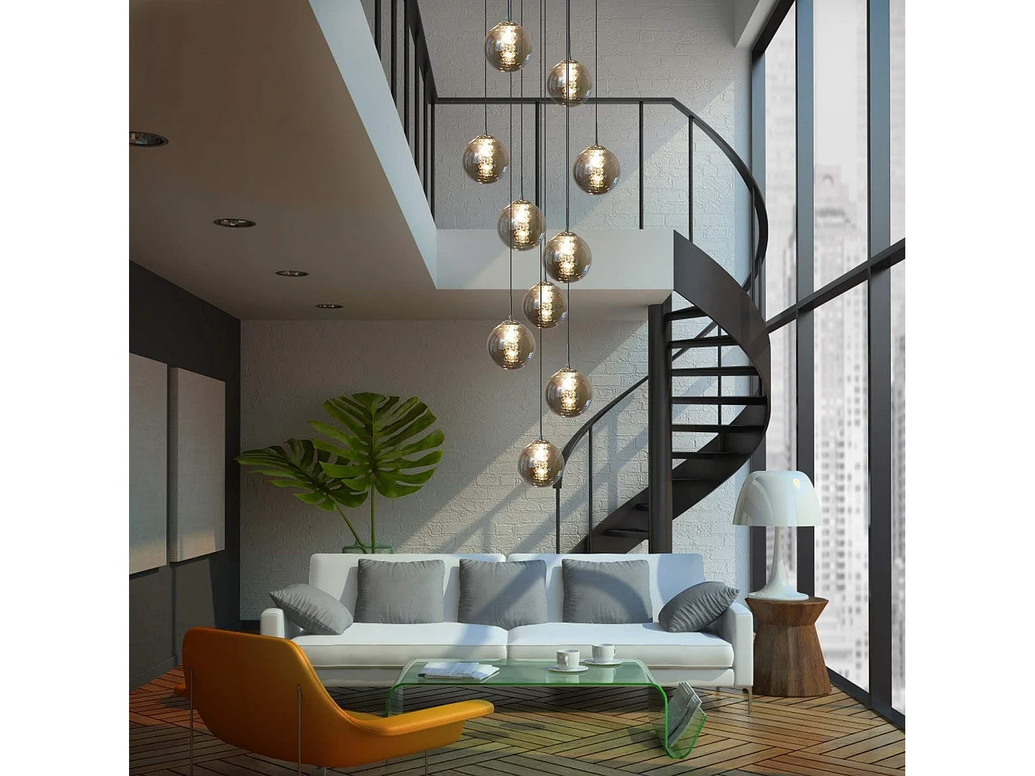 NETTLIFE Suspension verre gris Diam.41 cm G9 lustre 10 lampes en couleur lampe de salon lampe de chambre lampe de table à manger lampe de couloir