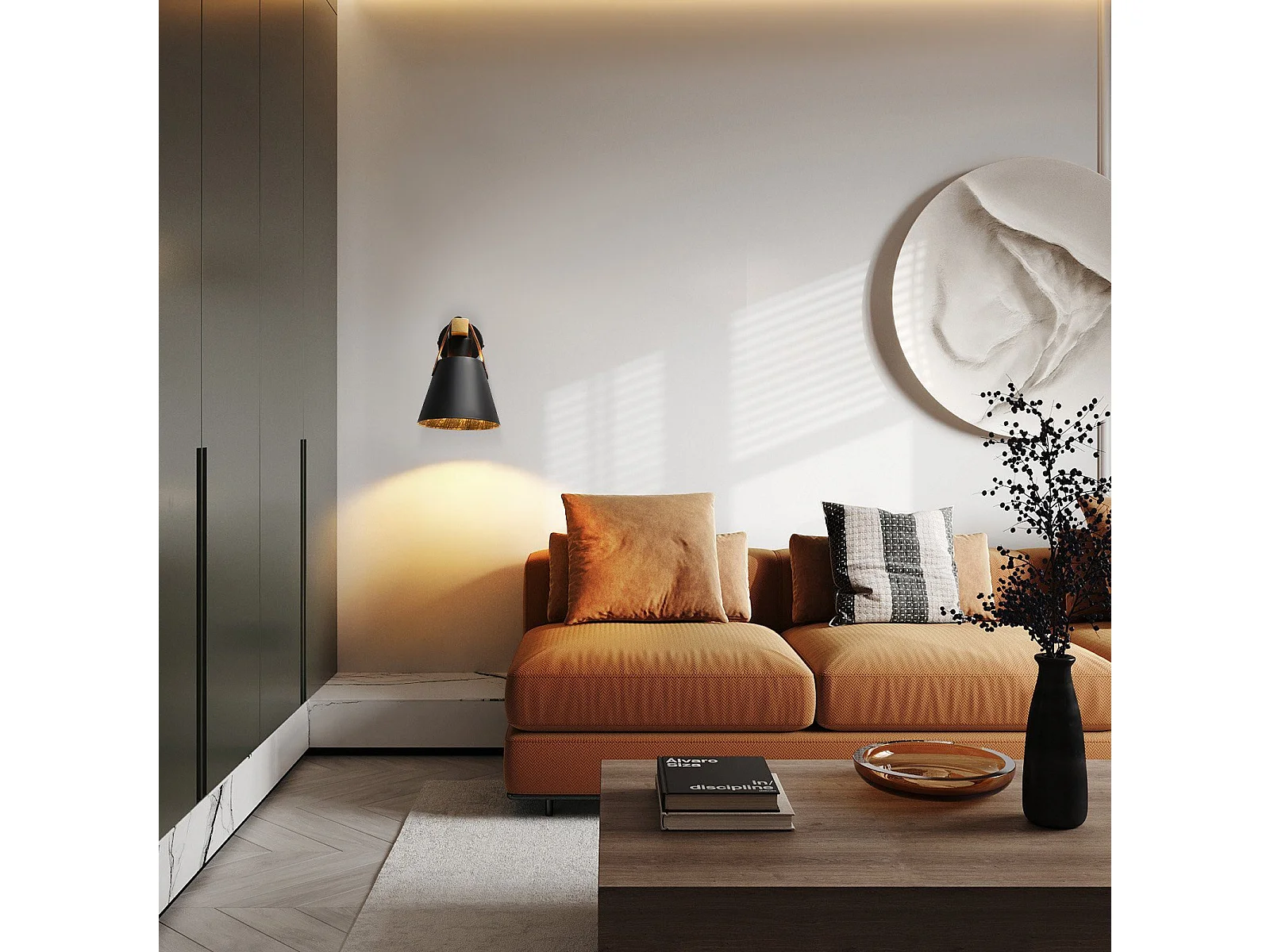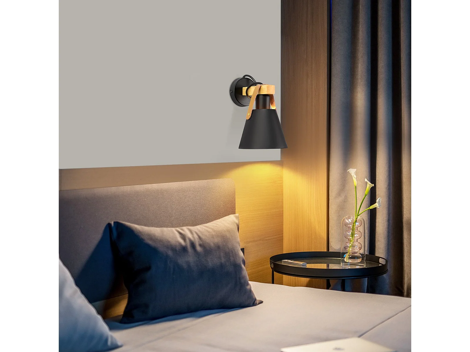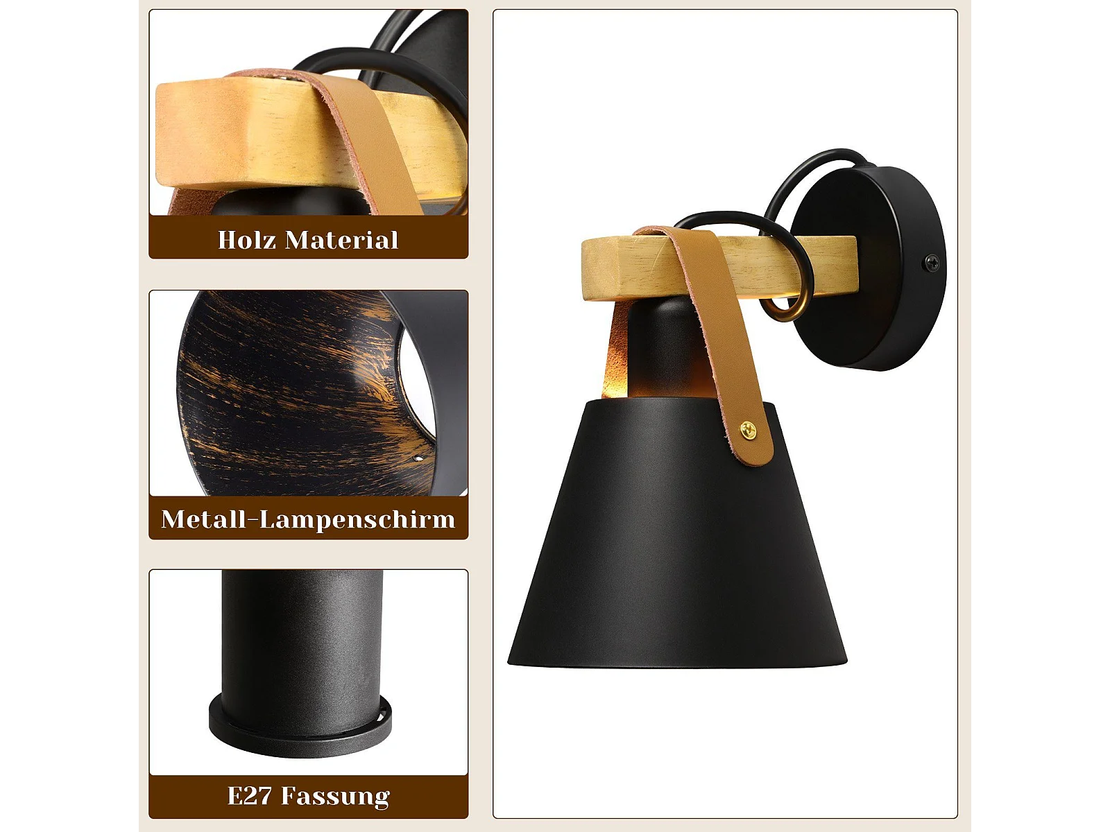 NETTLIFE Vintage Applique murale rétro E27 en noir industriel intérieur éclairage mural en bois cuir plastique (sans ampoule)