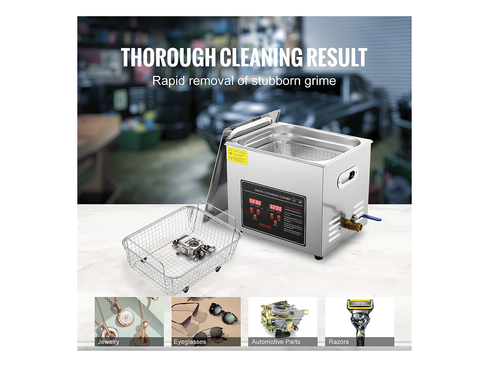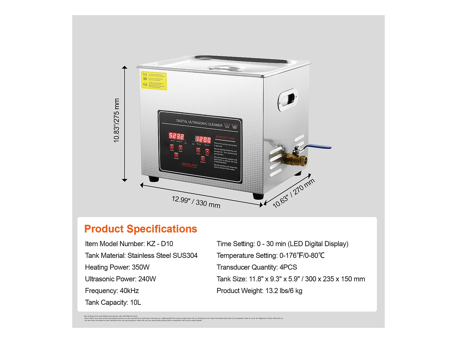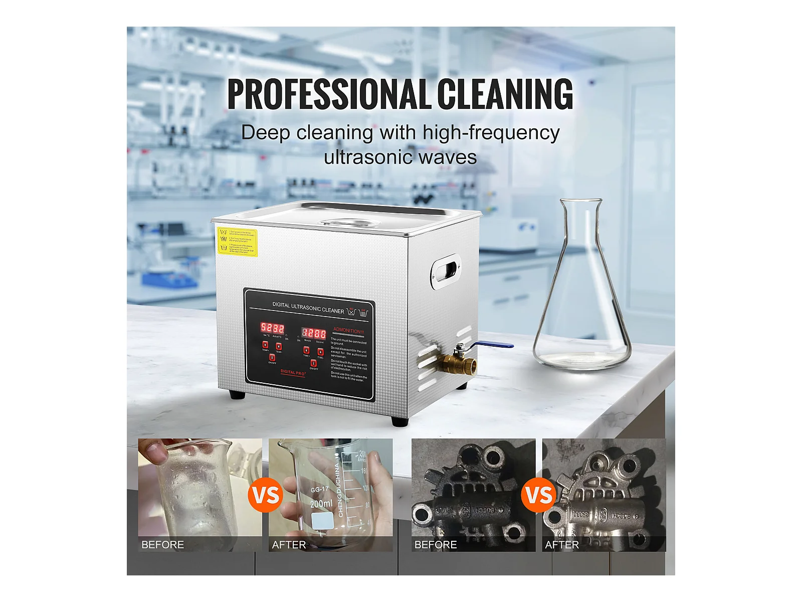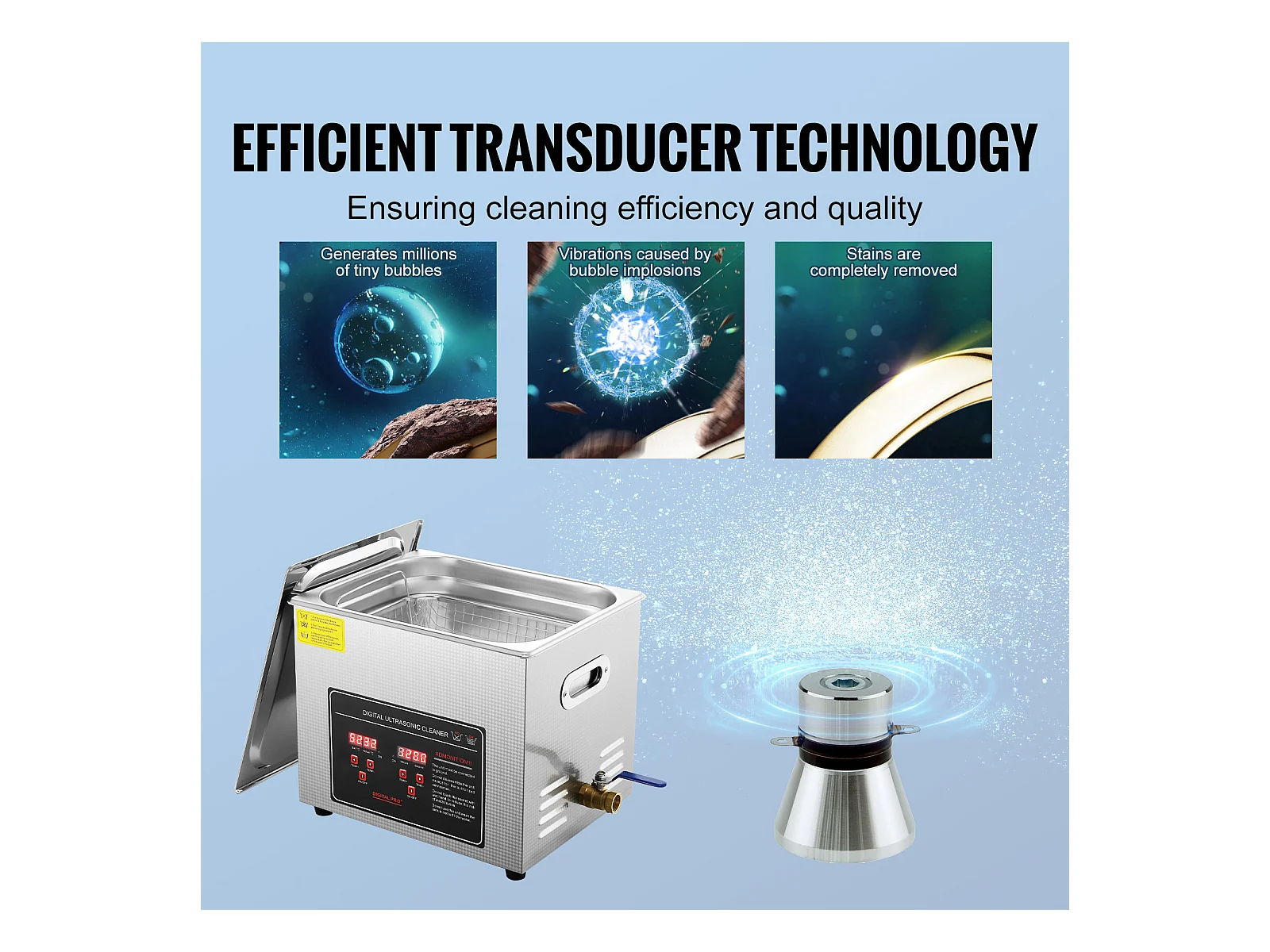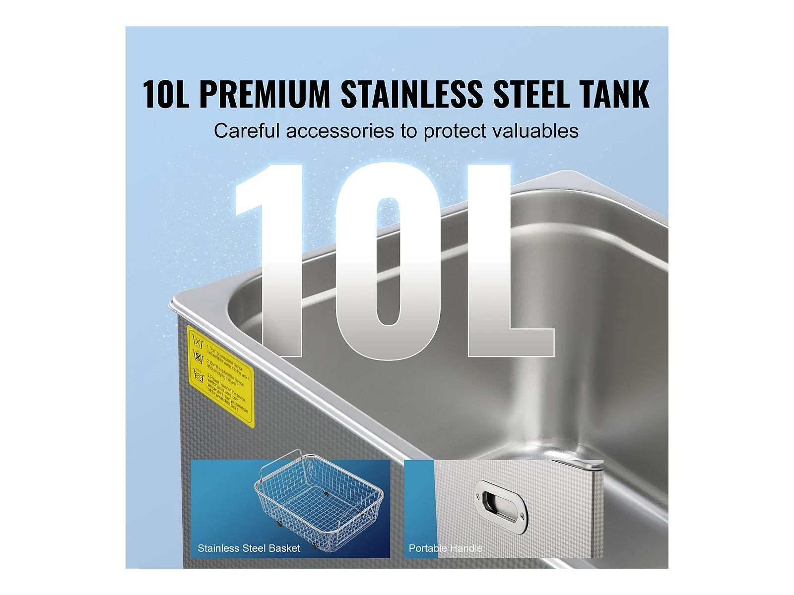 Nettoyeur à Ultrasons SucceBuy 10L avec Minuterie et Chauffage, Machine de Nettoyage Sonique Numérique