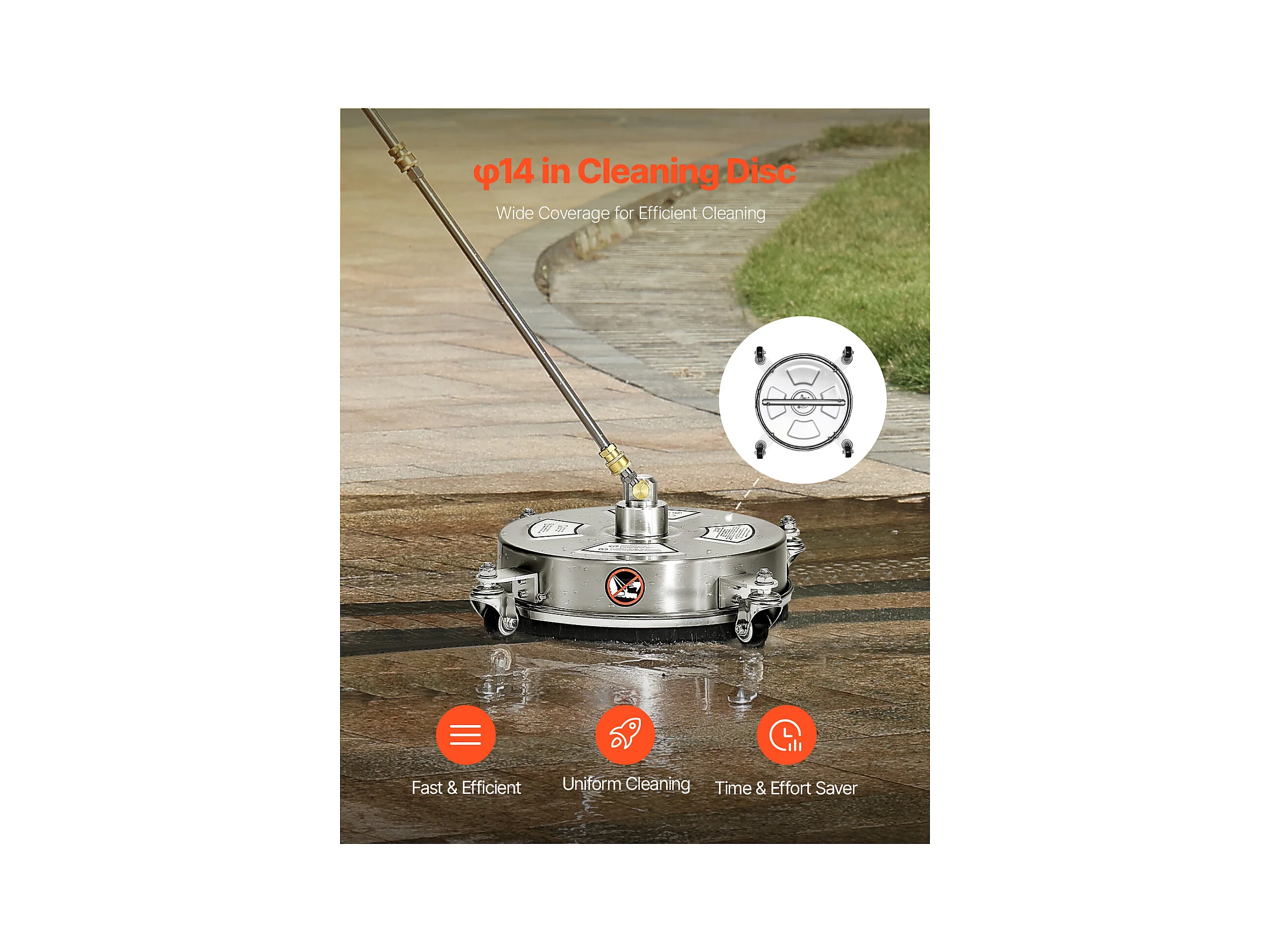 Nettoyeur pour Surfaces, SucceBuy Nettoyeur de Surface à Pression 35.56 cm, 27.58 MPa max, 4 Roues, 2 Baguettes Allongées