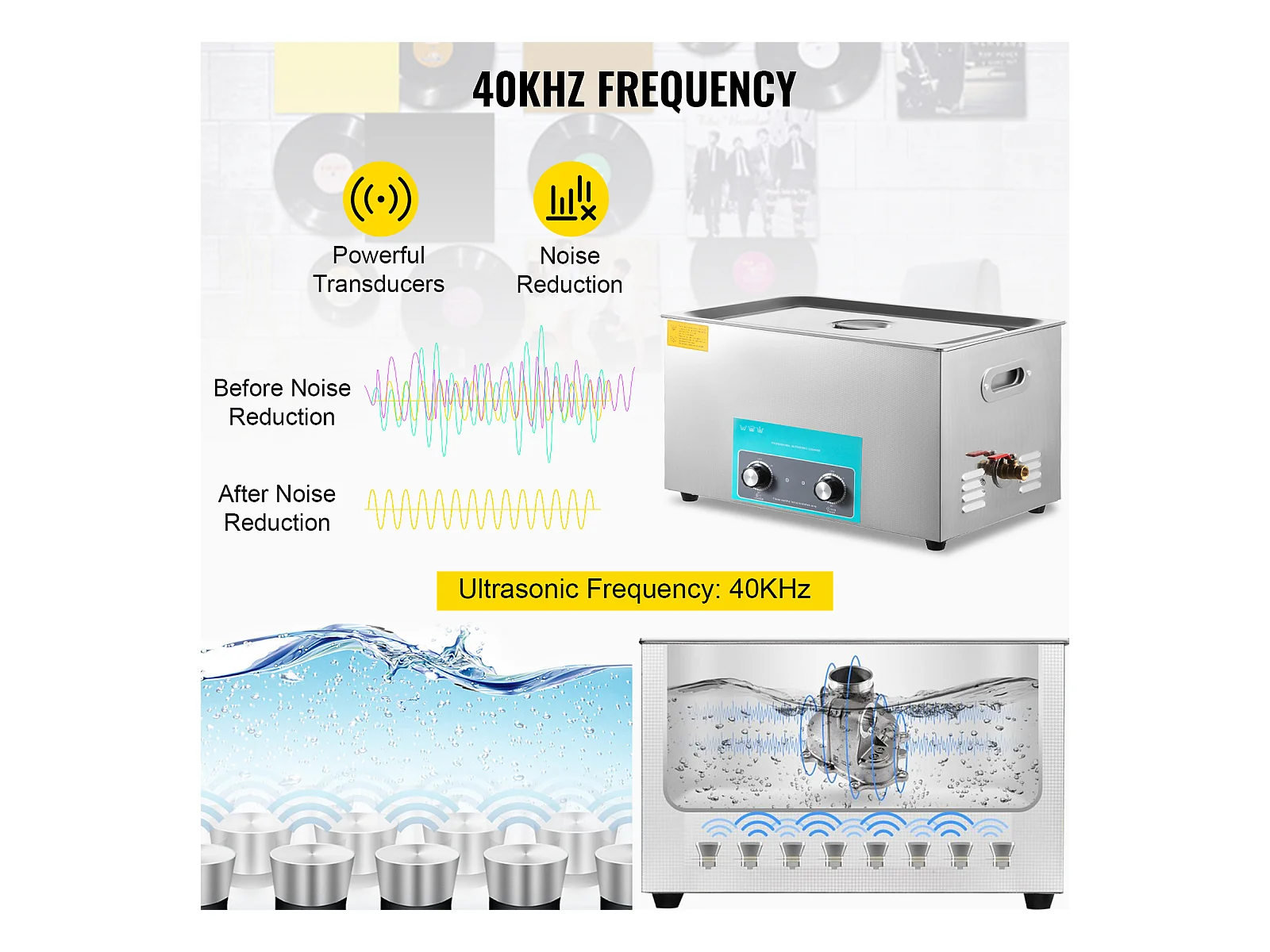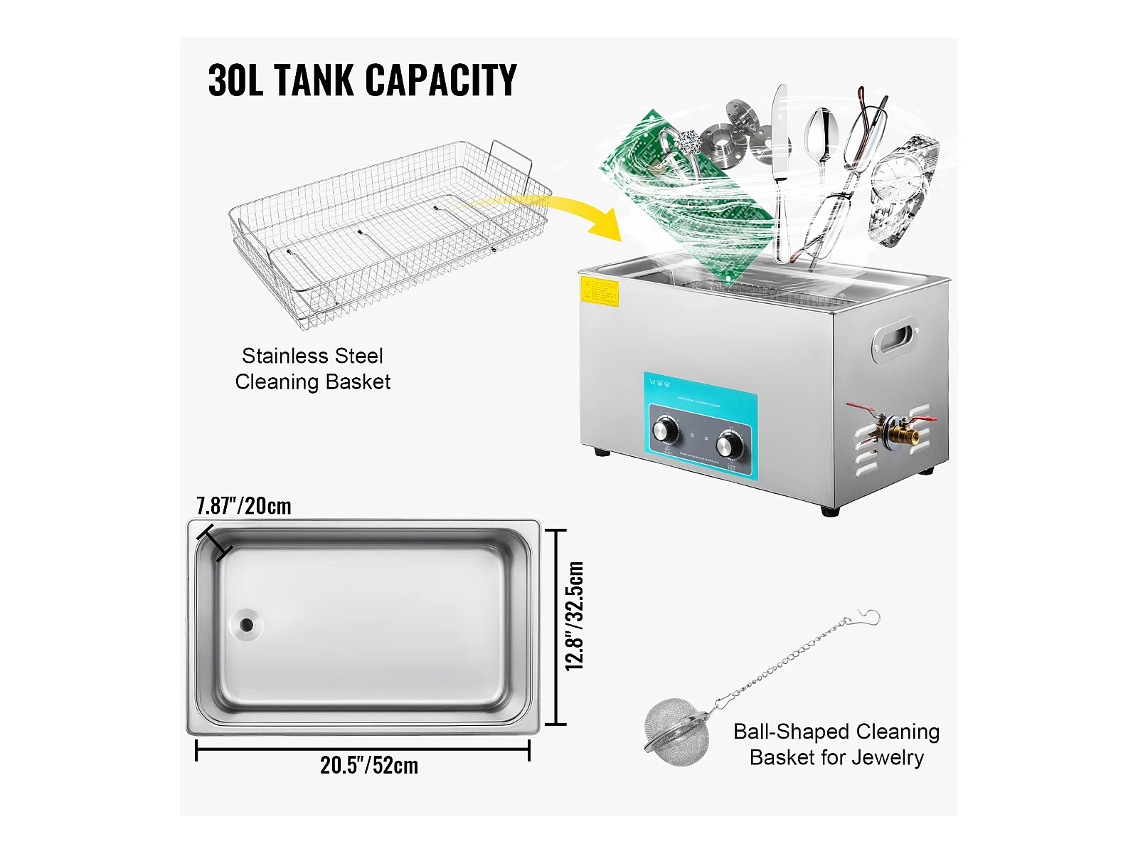 Nettoyeur SucceBuy 30L Nettoyeur Ultrasonique pour Bijoux, Minuterie de Chauffage, Bagues de Lunettes, Dentiers, 220V, Argent