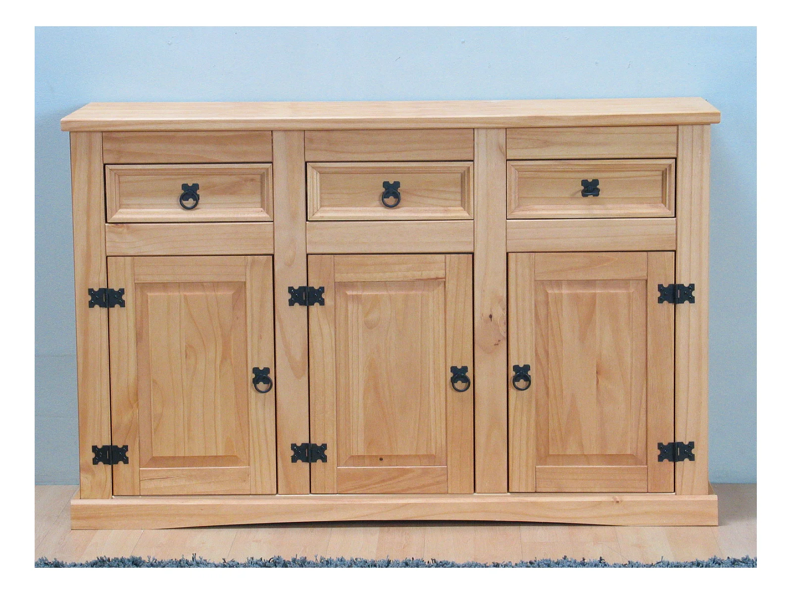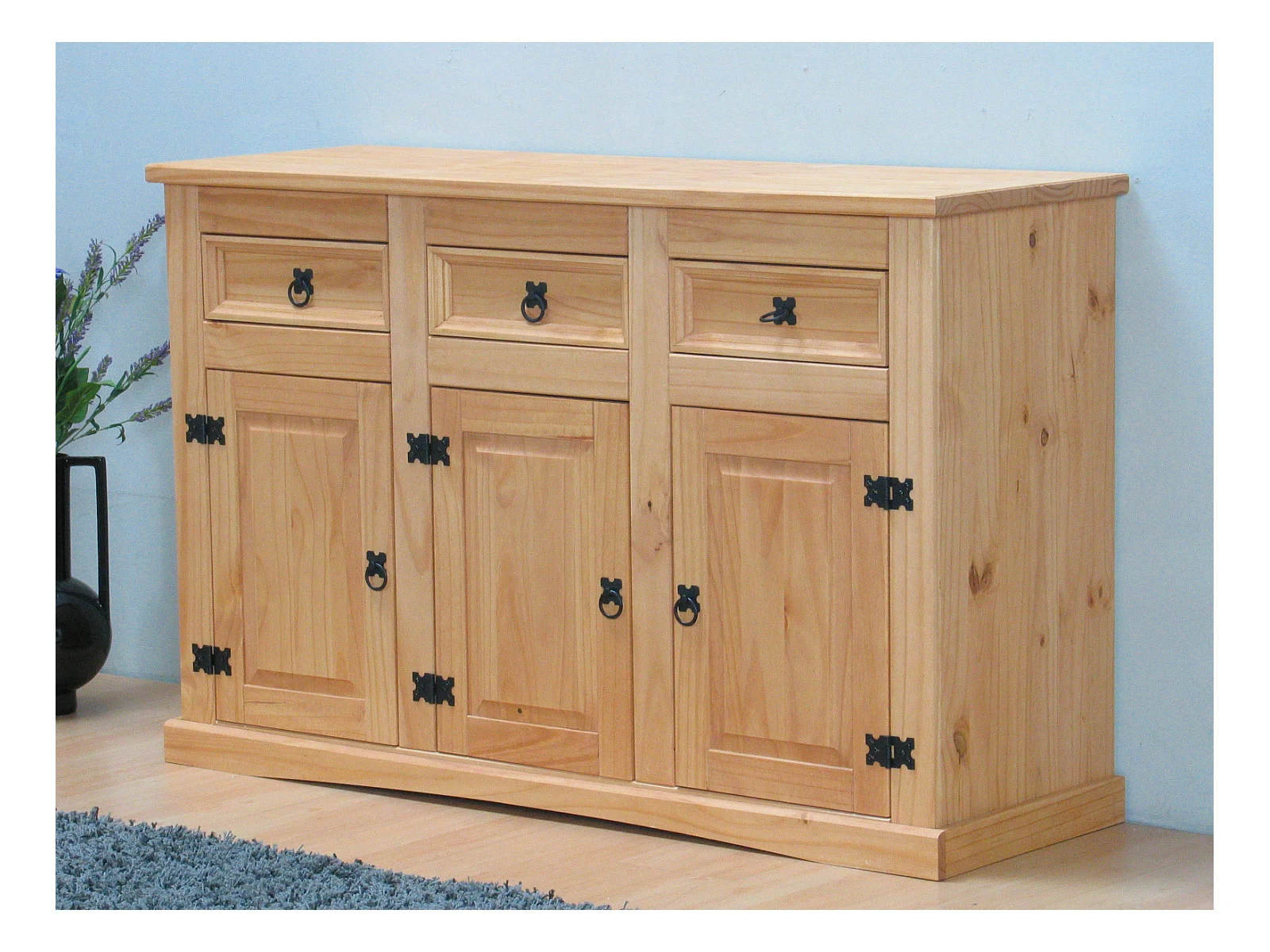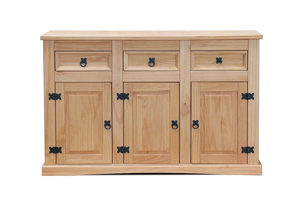 New Mexico Buffet, avec 3 tiroirs et 3 portes, largeur 132 cm, hauteur 84 cm, teinte/cire dans un style colonial.