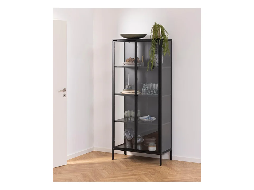 Sea Vitrine avec 2 portes vitrées et 3 tablettes de rangement, noir.