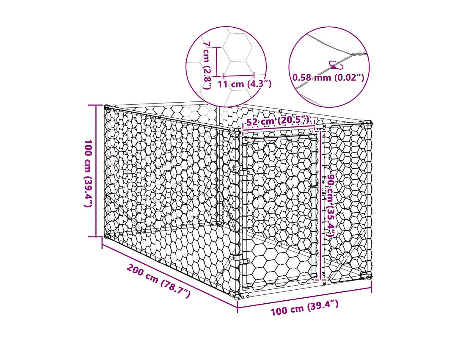 Niche d'extérieur pour chien enclos 6x2x1,5 m acier galvanisé
