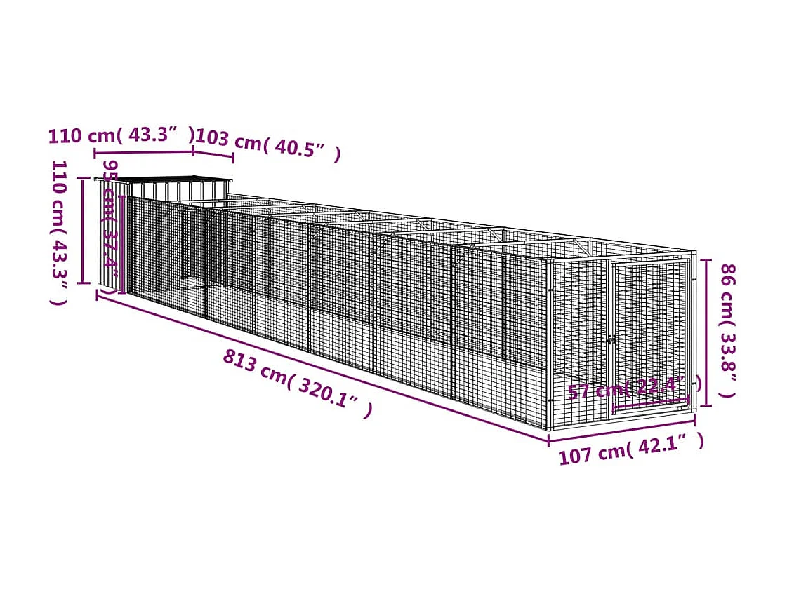 Niche pour chien avec cour anthracite 110x405x110 cm
