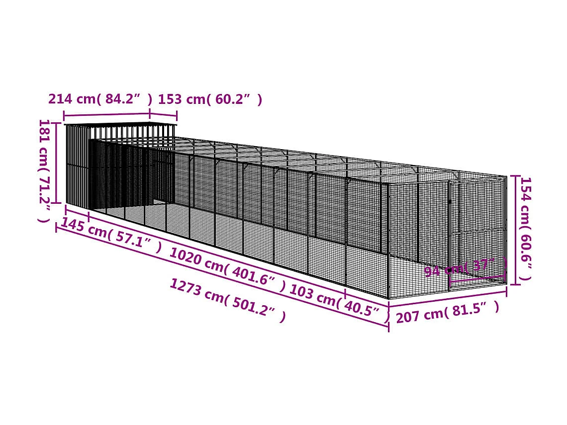 Niche pour chien avec cour anthracite 214x1273x181 cm