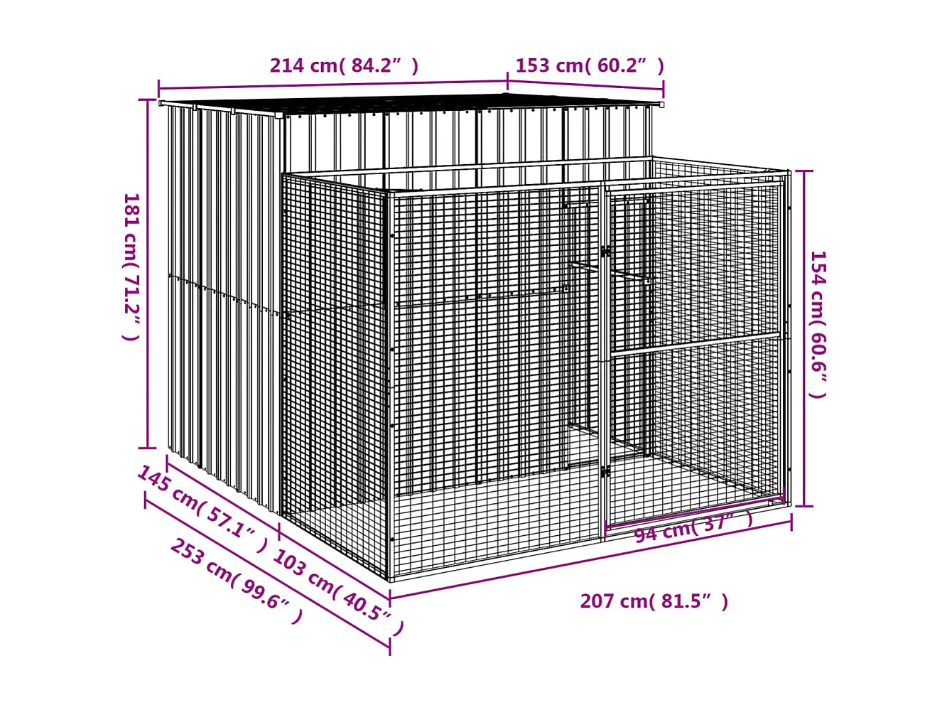 Niche pour chien avec cour anthracite 214x253x181 cm