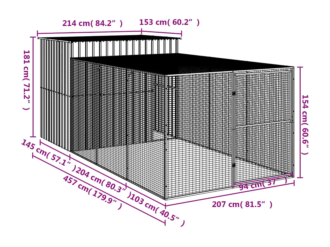 Niche pour chien avec cour anthracite 214x457x181 cm