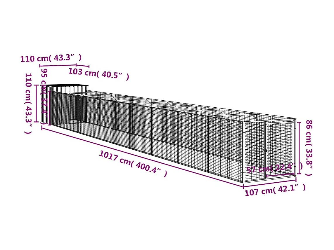 Niche pour chien avec cour anthracite 110x405x110 cm