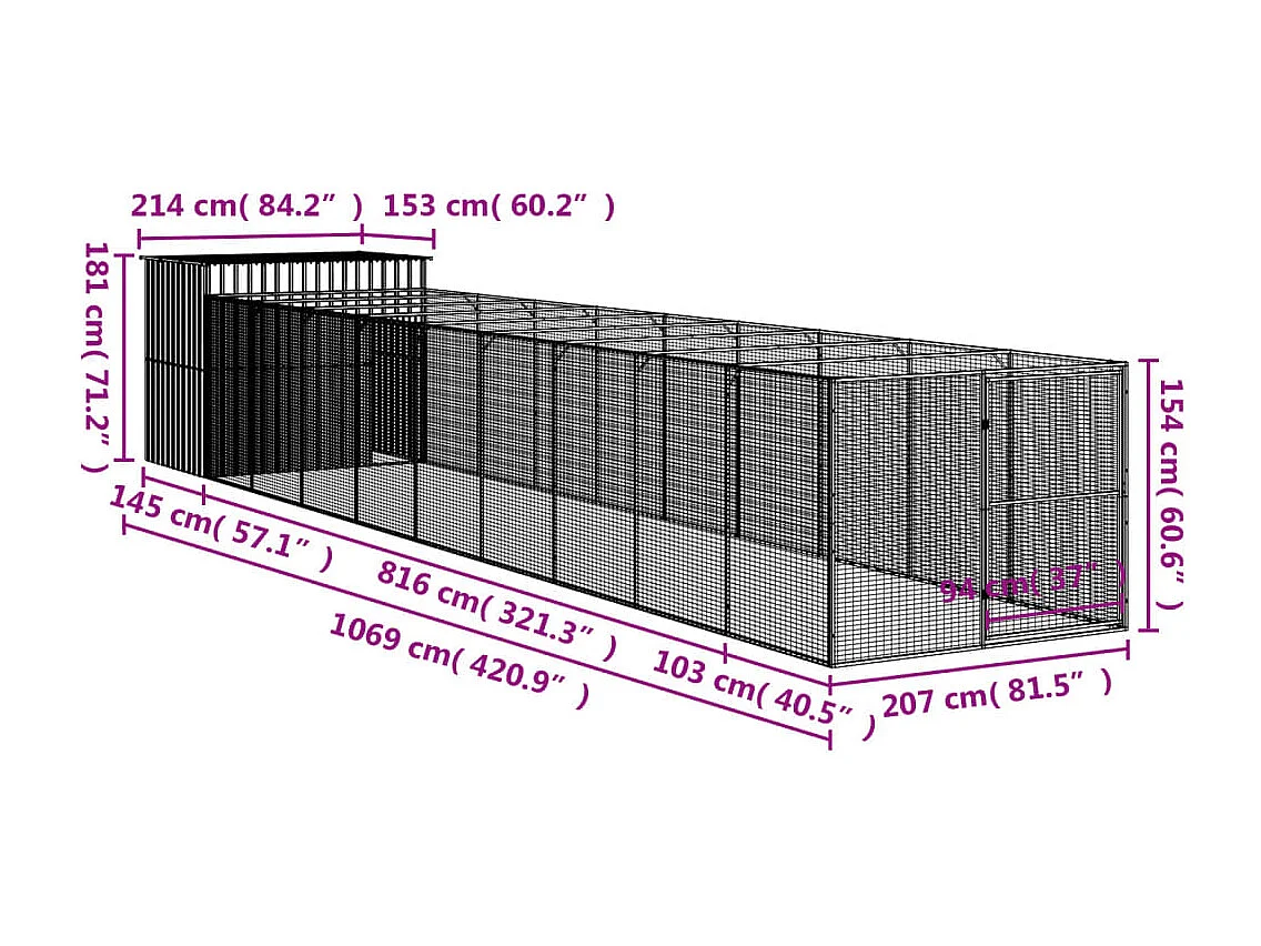 Niche pour chien avec cour anthracite 214x1069x181 cm