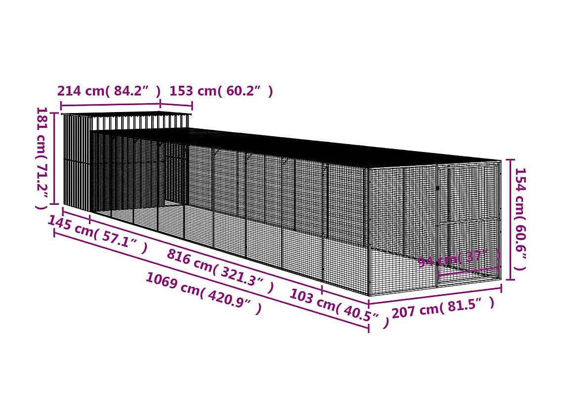 Niche pour chien avec cour anthracite 214x661x181 cm