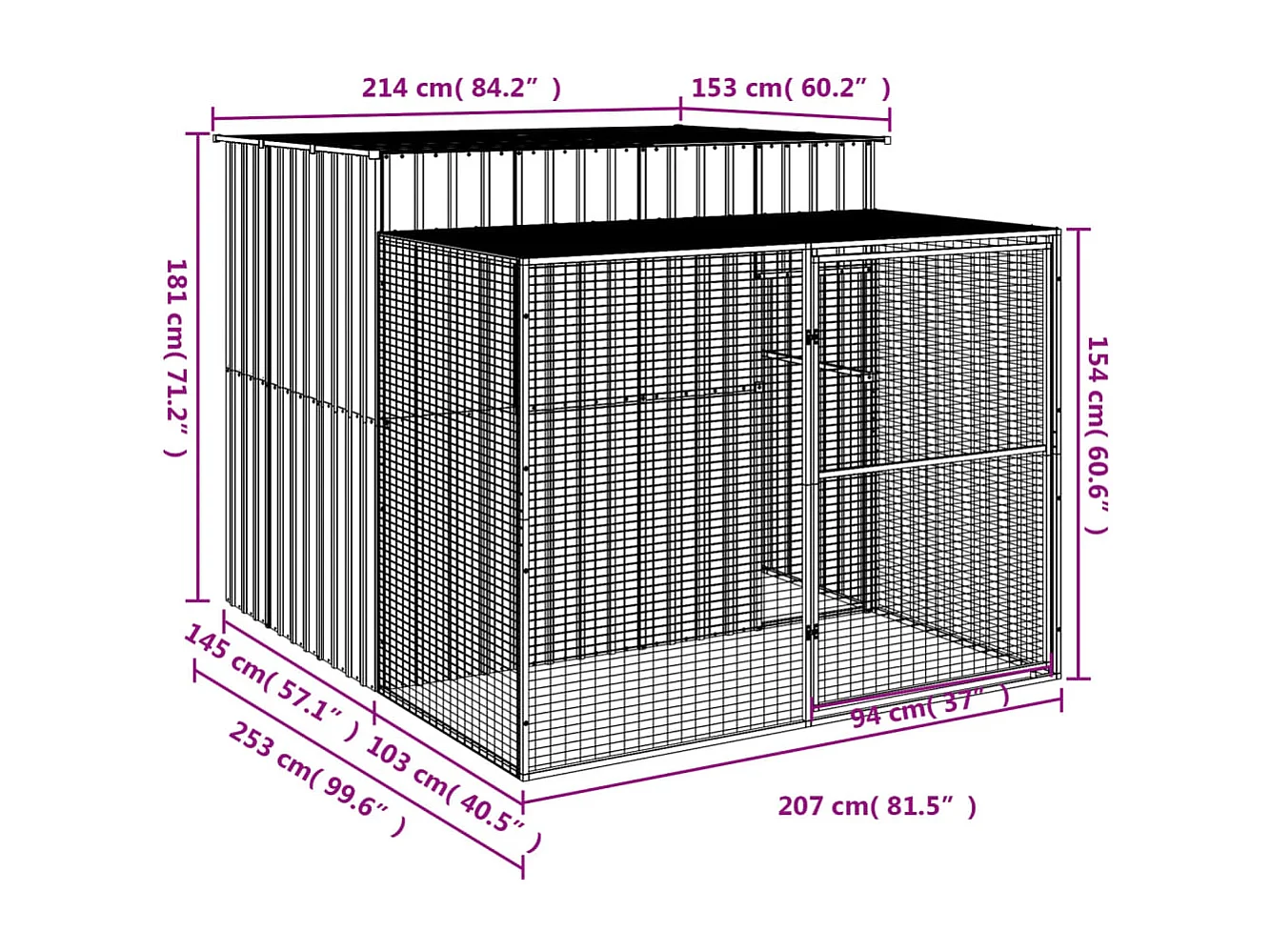 Niche pour chien avec cour anthracite 214x661x181 cm