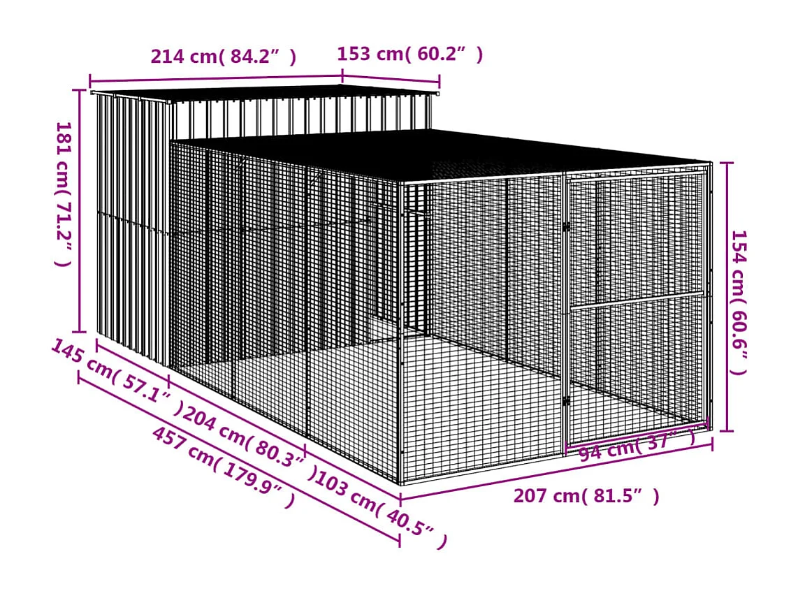 Niche pour chien avec cour gris clair 214x457x181 cm