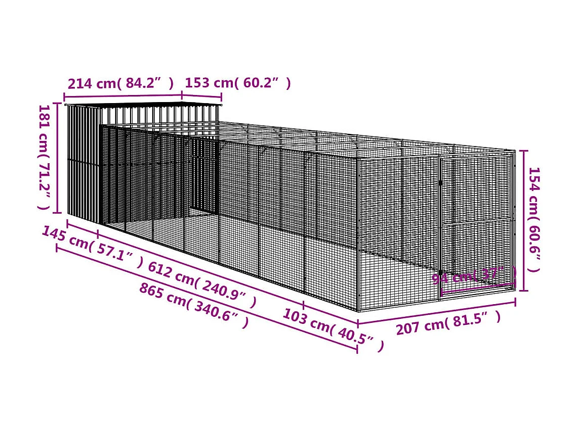 Niche pour chien avec cour anthracite 214x661x181 cm