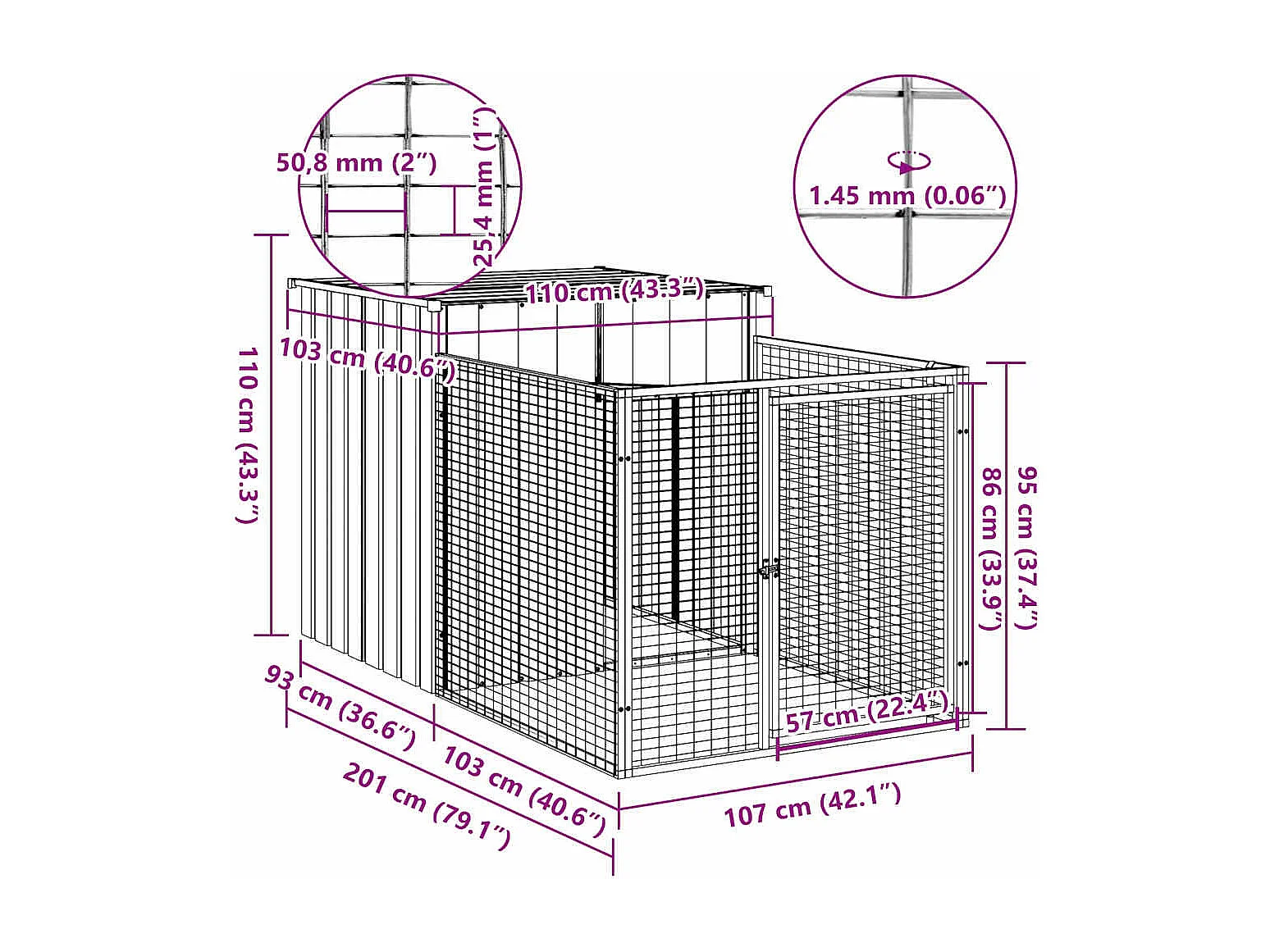 Niche pour chien avec enclos Anthracite 197 x 396 x 110 cm Acier galvanisé